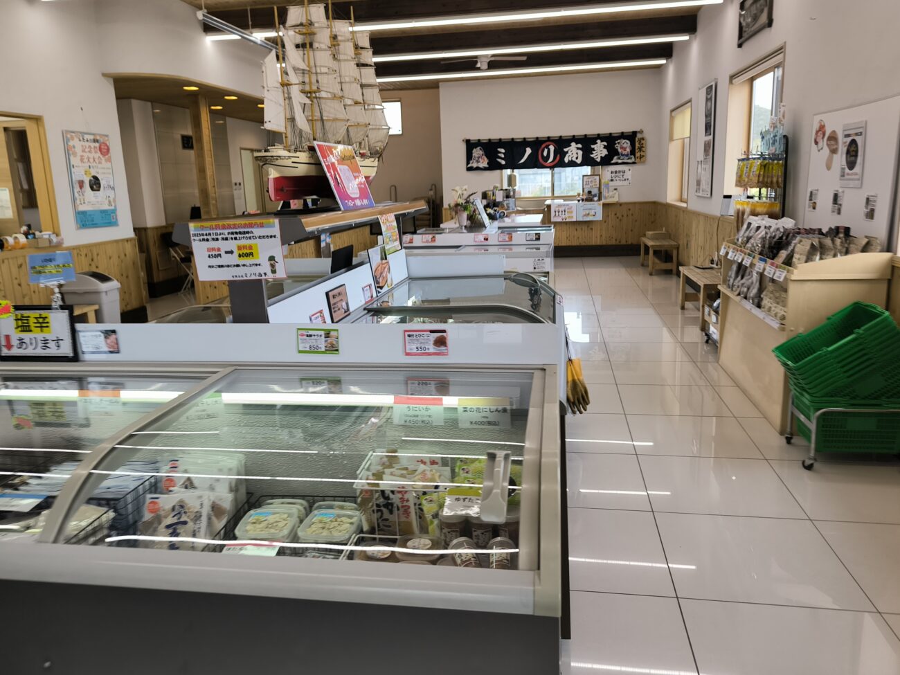 店内には長谷川水産の工場で作られた商品を中心に、各地の海産物が並んでいます。