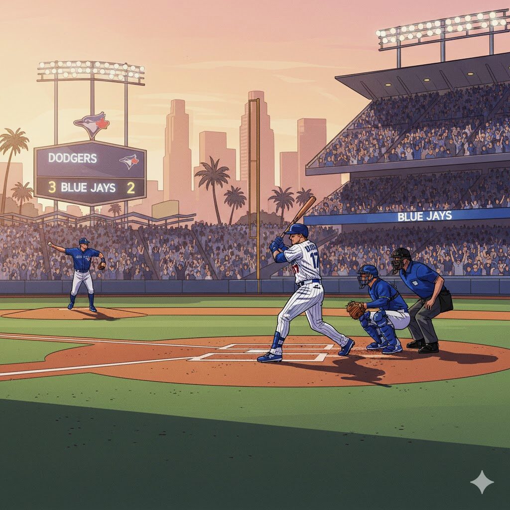 この試合はワールドシリーズ第3戦で、ドジャーズがブルージェイズに6対5で勝利。