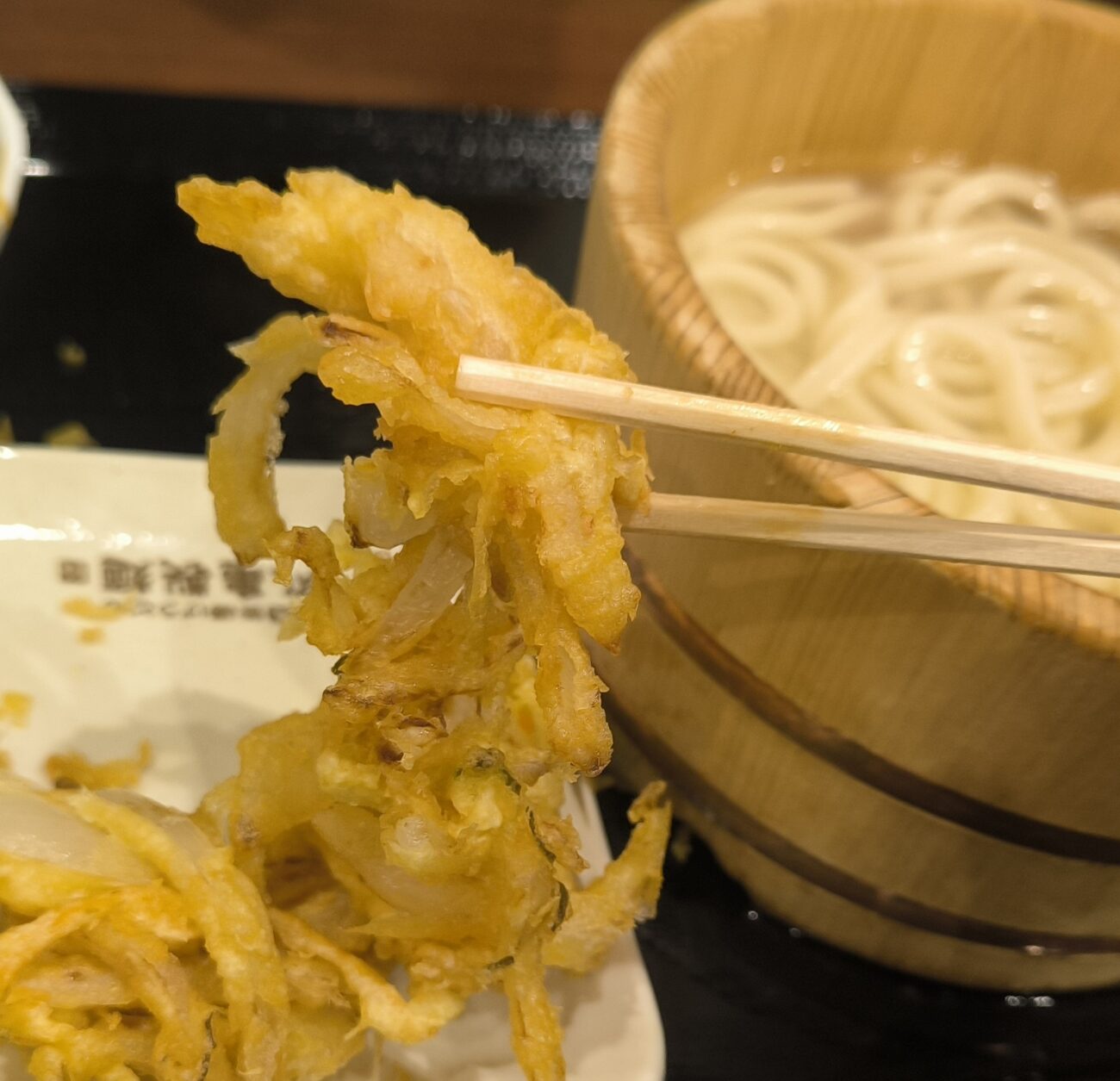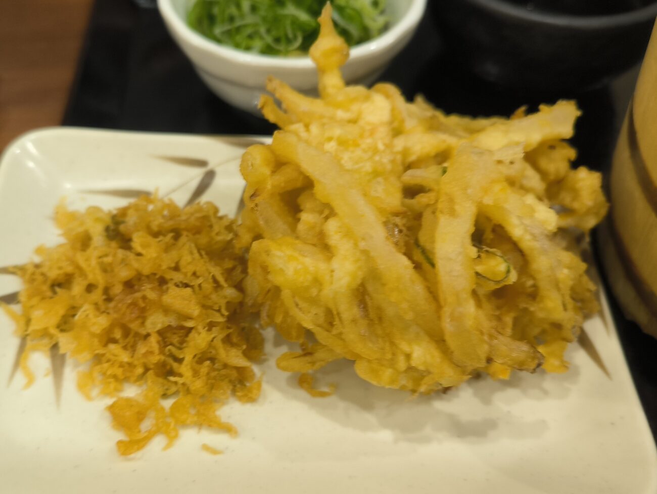 途中で友人のかき揚げを少し分けてもらって加えます。