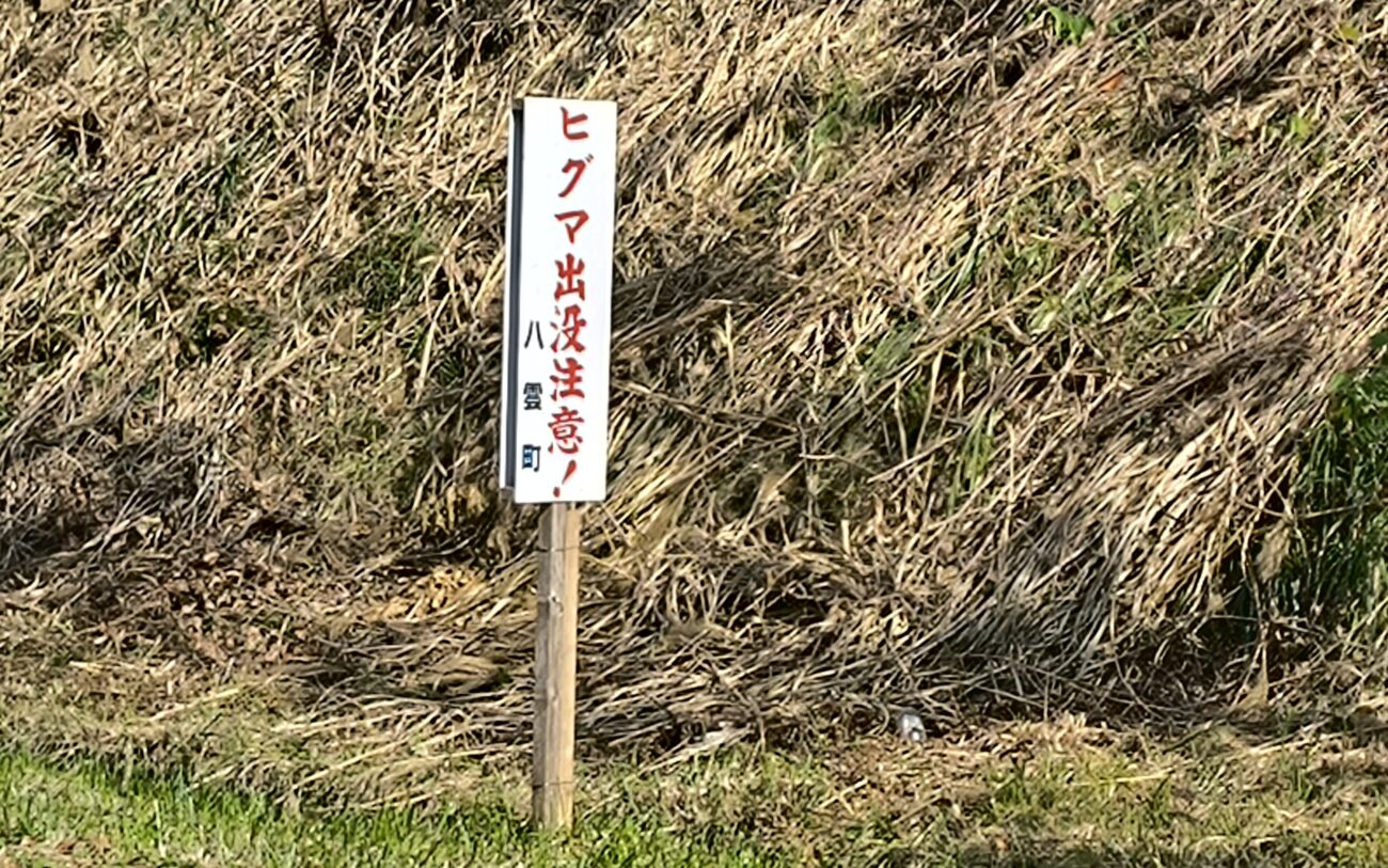道中の道路には「ヒグマ出没中 注意」の看板が。