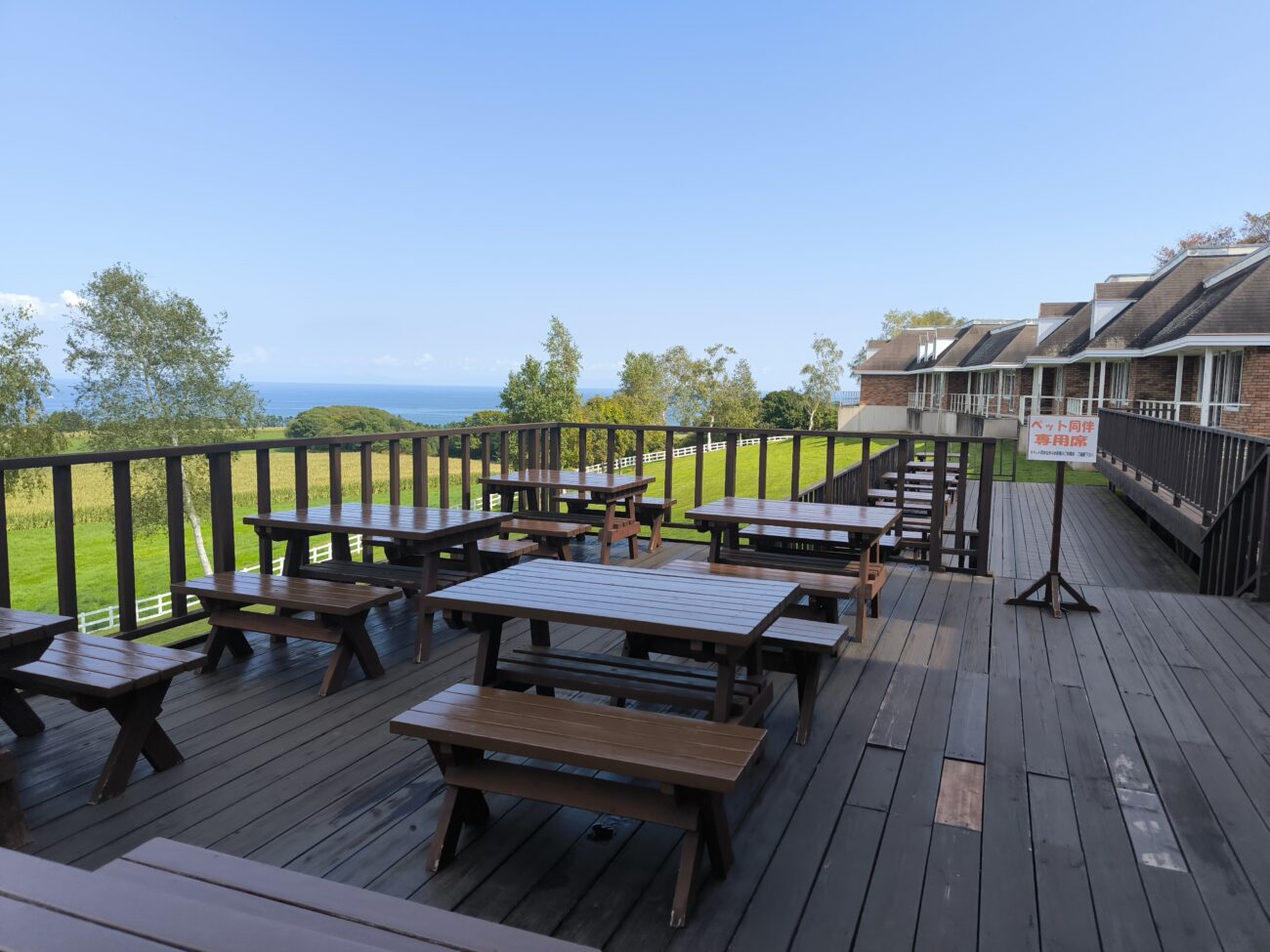 テラス下の芝生では小さな男の子が黄色い蝶々を追いかけていて、その光景に自然と笑顔になります。