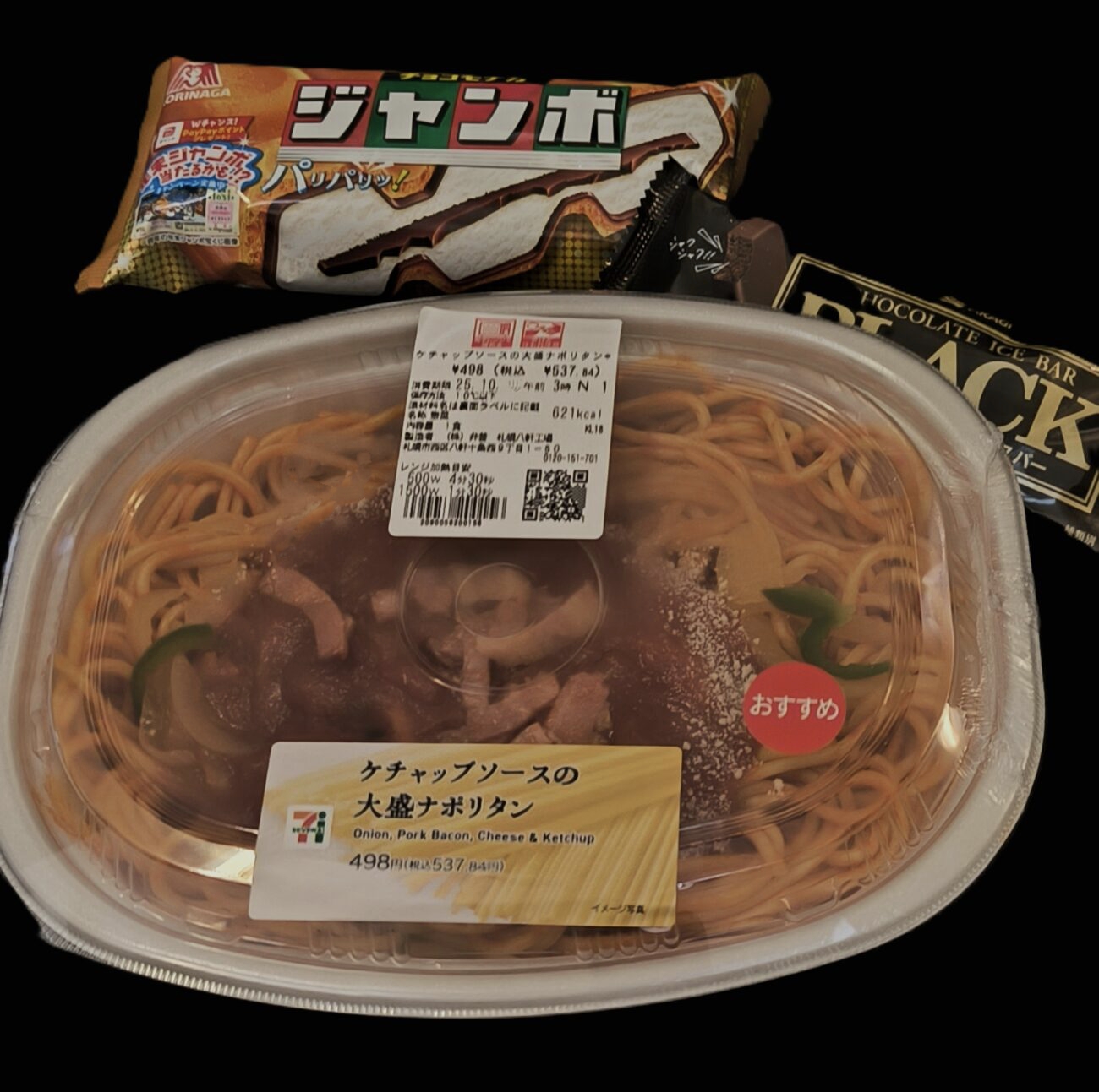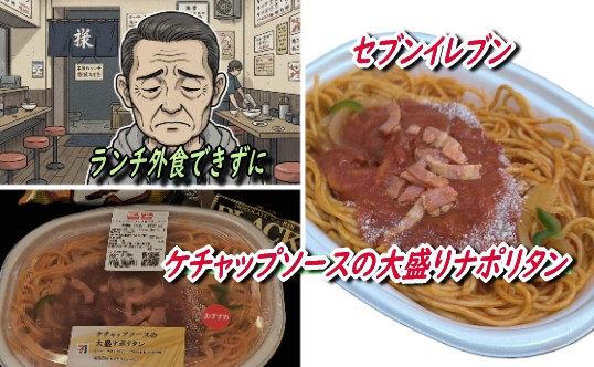 外食ランチができずにセブンイレブンの【大盛りナポリタン】を!