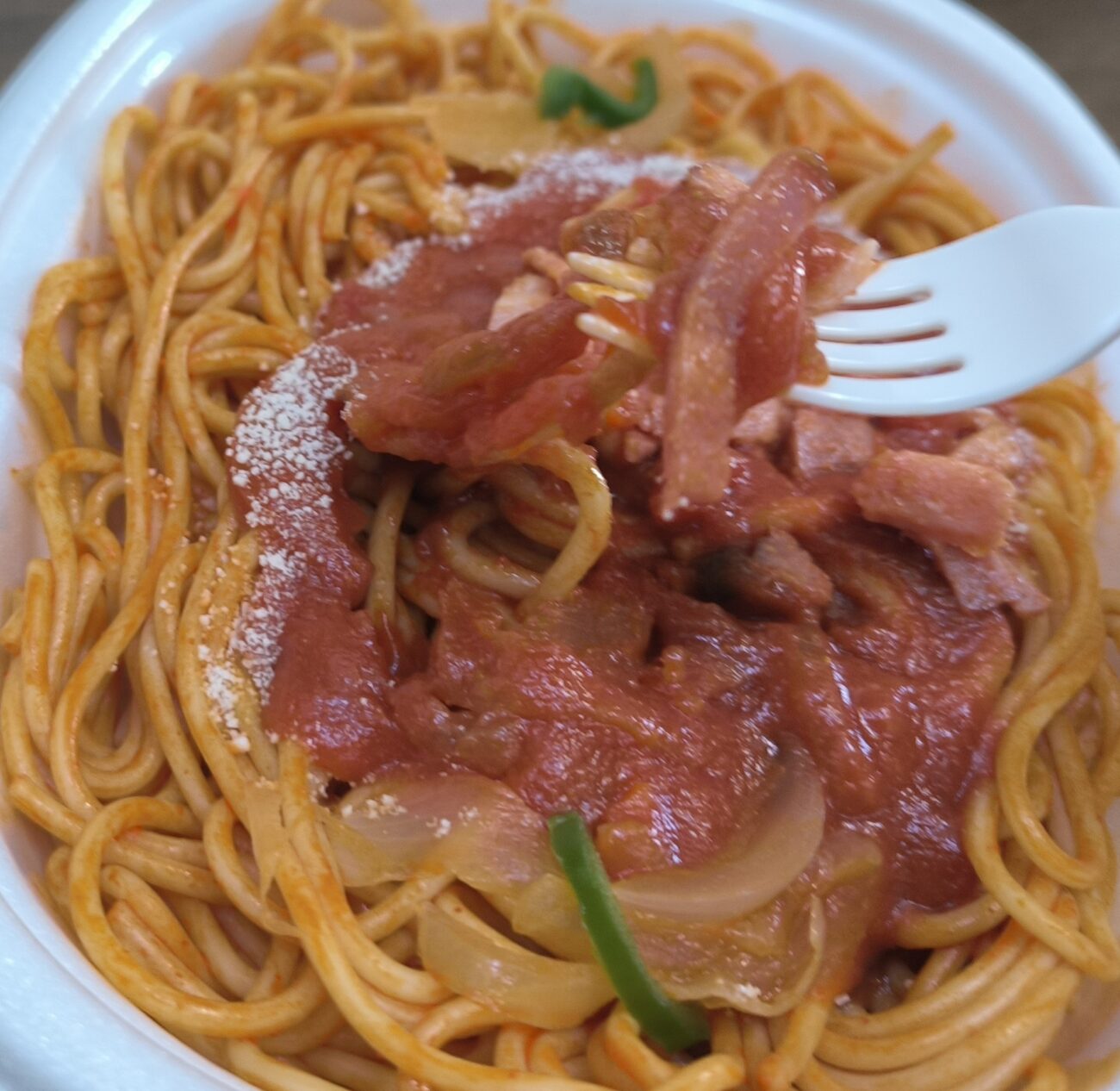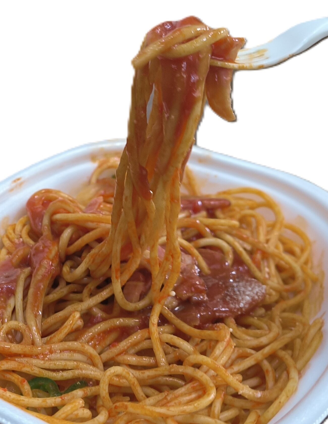 以前セブンイレブンでは、日本の有名なナポリタン専門店とコラボしていましたが、そのときの麺に似ている気がします。