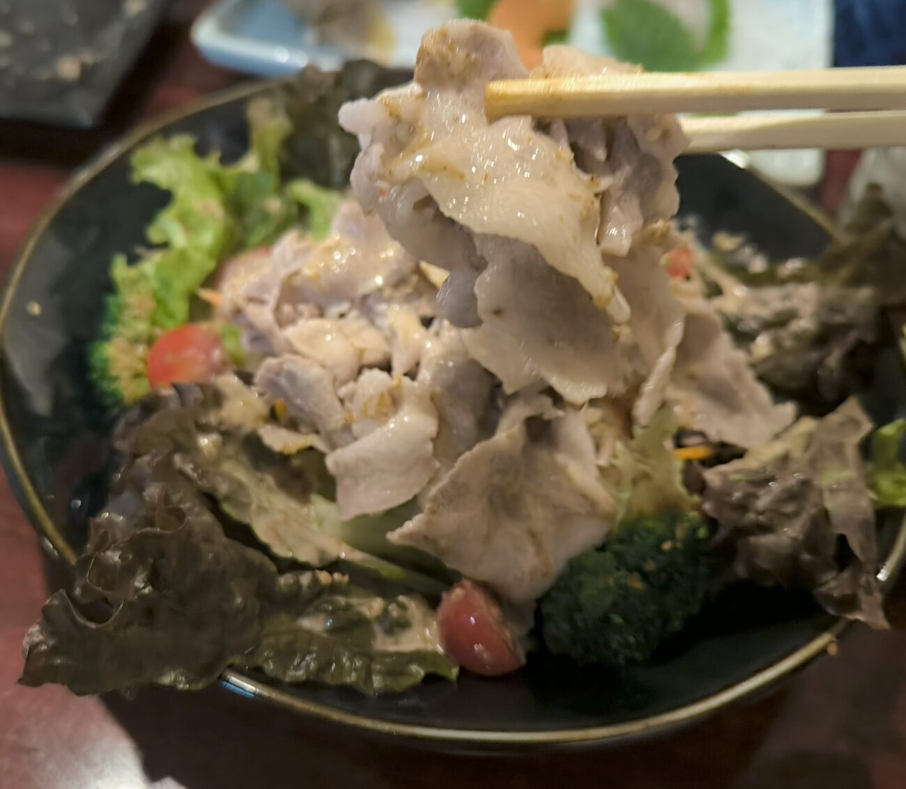 「黒豚冷しゃぶサラダ 2倍盛り」です。890円