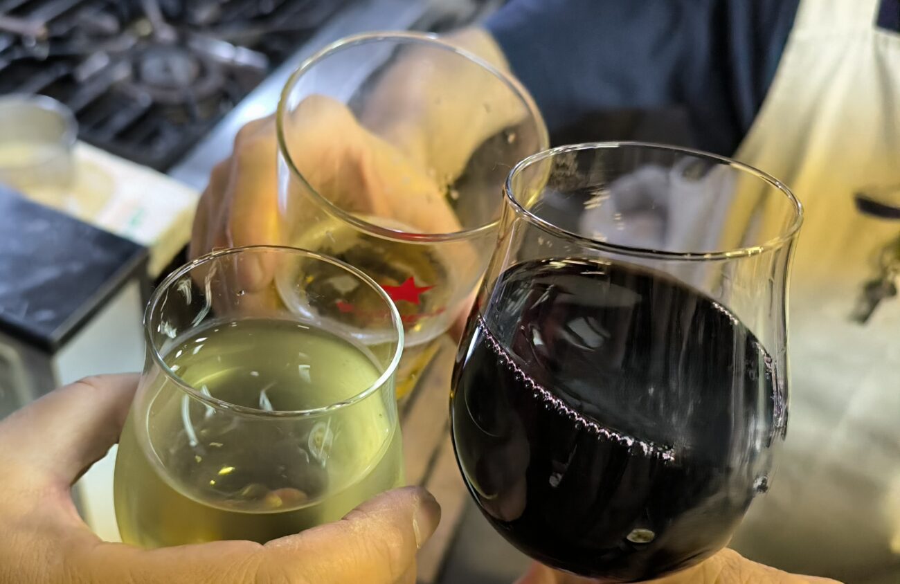 大町夜想ではピンチョスが200円、グラスワインが300円と激安なんです。