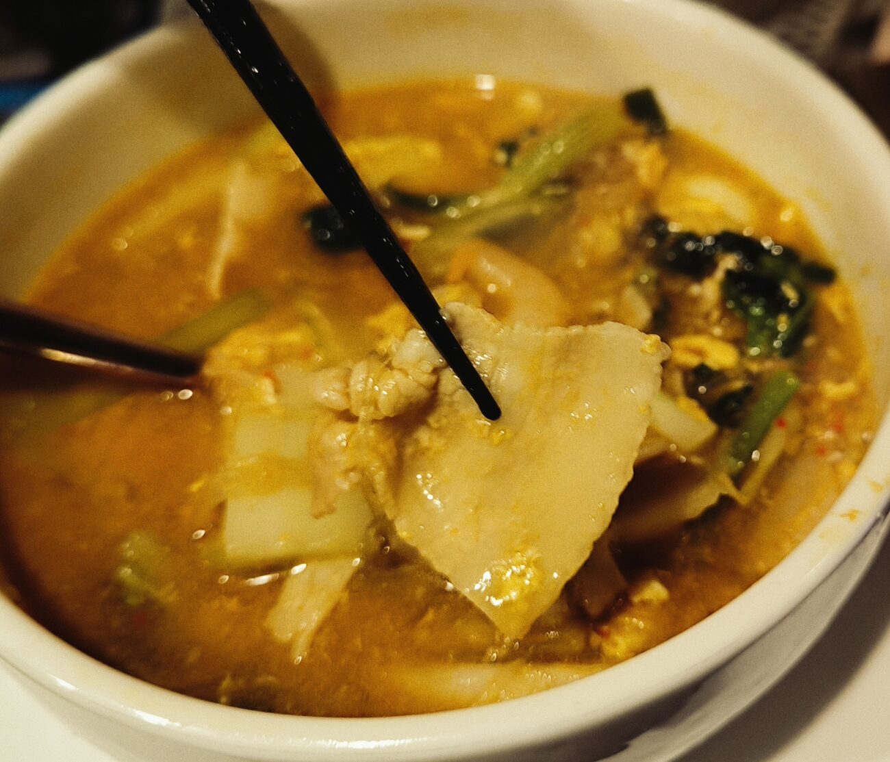 まずは一口スープを含むと・・・これはもう、「タイの屋台」レベルではなく「本格タイレストラン」の味。