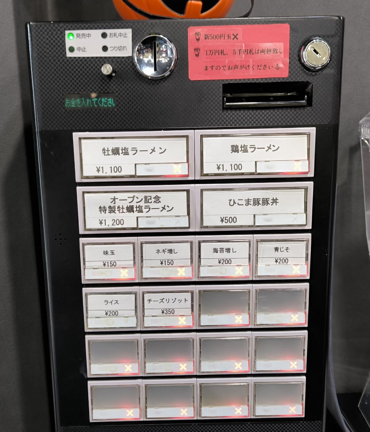 オープン記念として、特製牡蠣塩ラーメンを1200円で提供していました。通常1400円