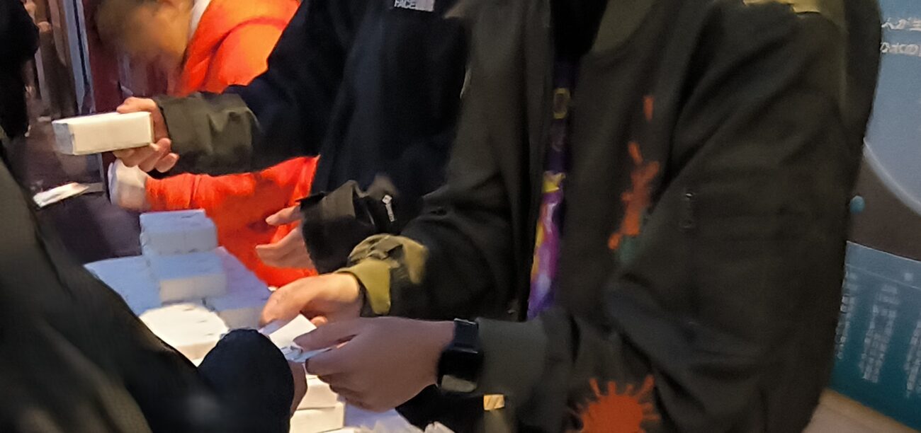 プレゼントの配布は「行列短いなー」と思ったら、なんと道路のほうまでズラリ!