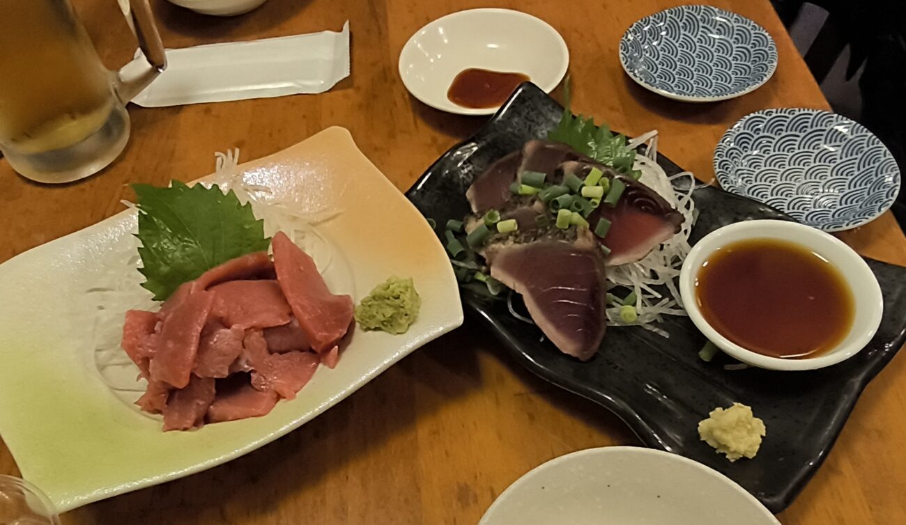 料理はマグロとカツオの刺身。