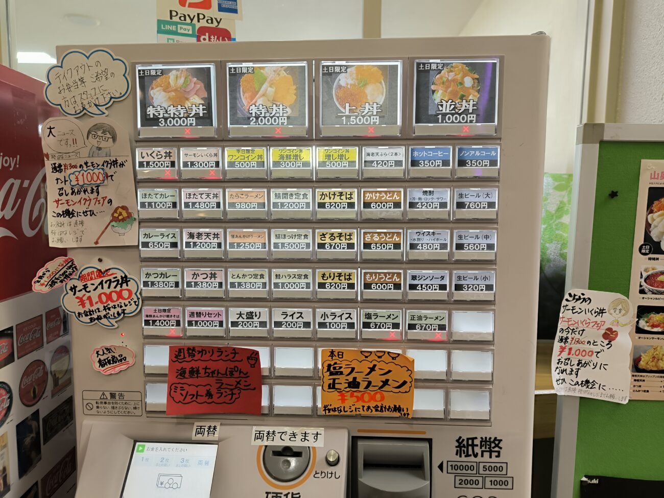 入り口の自動券売機で食券を購入。メニューがずらりと並び、思わず「いや〜悩むなあ…」と独り言も出るくらいです。