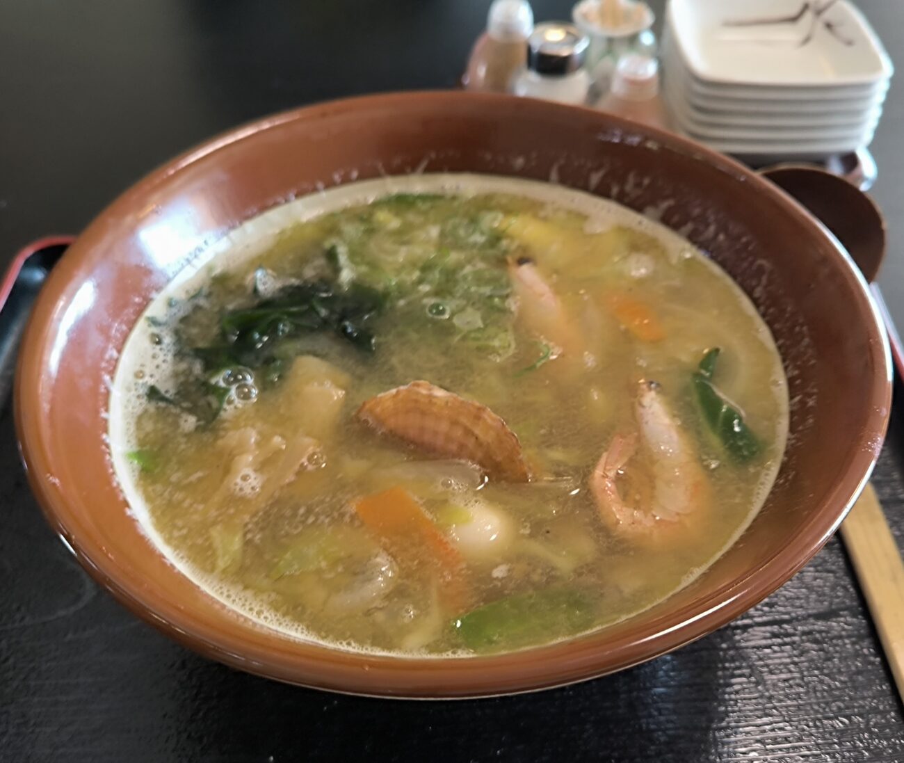 ちゃんぽんらしい野菜もたっぷり入っていて、海鮮の旨みと野菜の甘みがいいバランス。