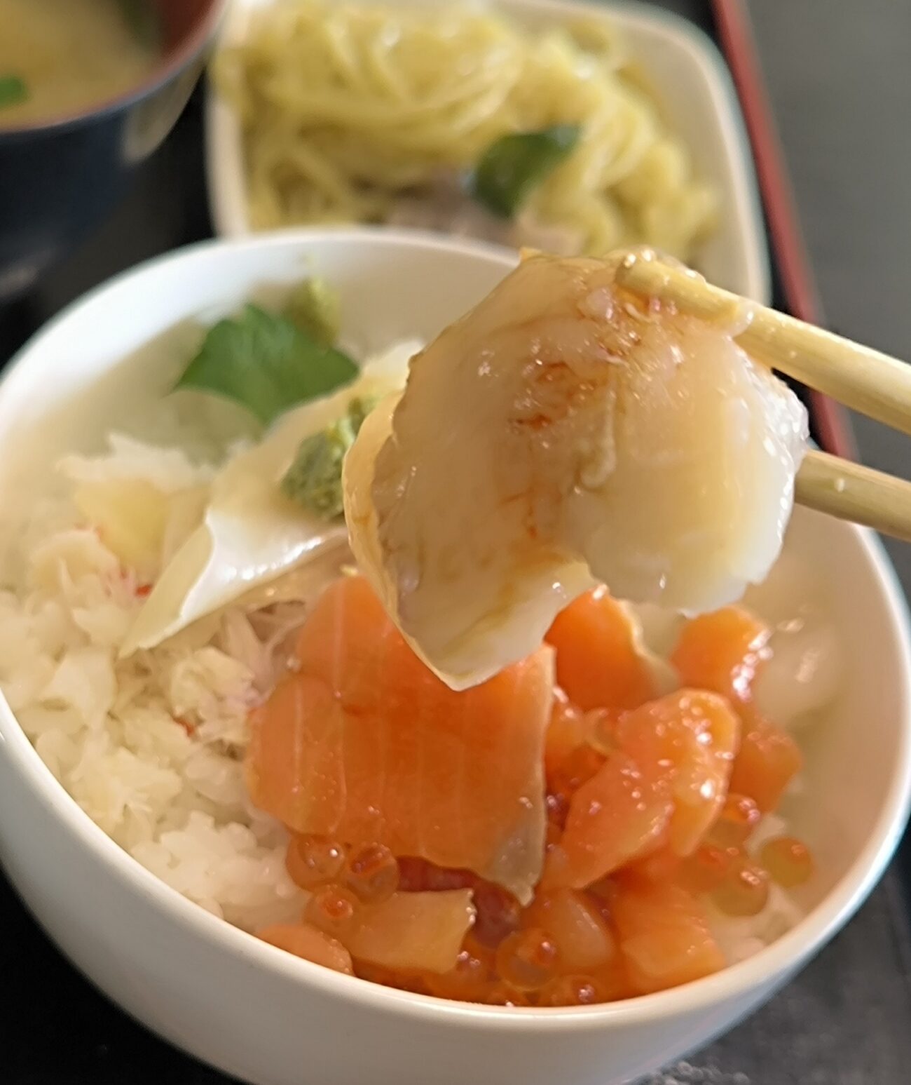 サーモン、いくら、カニ、ホタテと、思ったよりも具材がしっかり入っていました