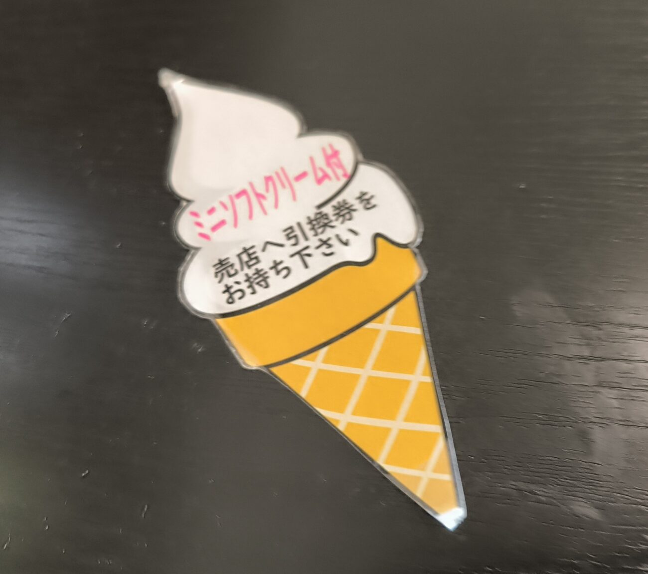食後にこの券を温泉の売店に持っていくと、ソフトと交換できます。