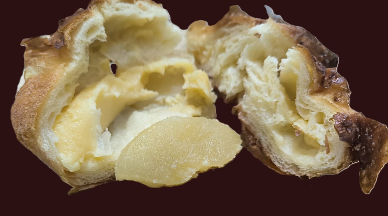 カットしてみると、リンゴとカスタードクリームがたっぷり入っていて、これがまたいい組み合わせ。
