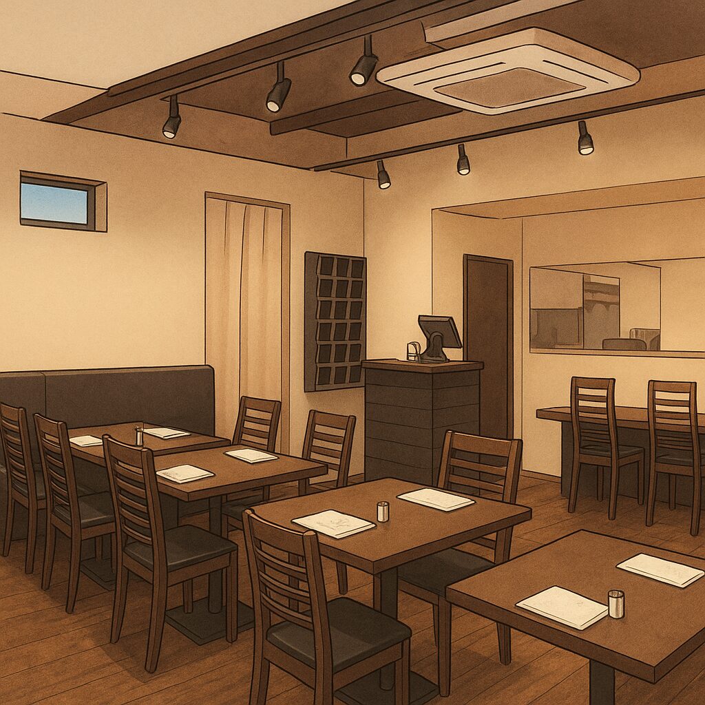 混んでいたので、AIで店内のイメージイラストを作ってみました。