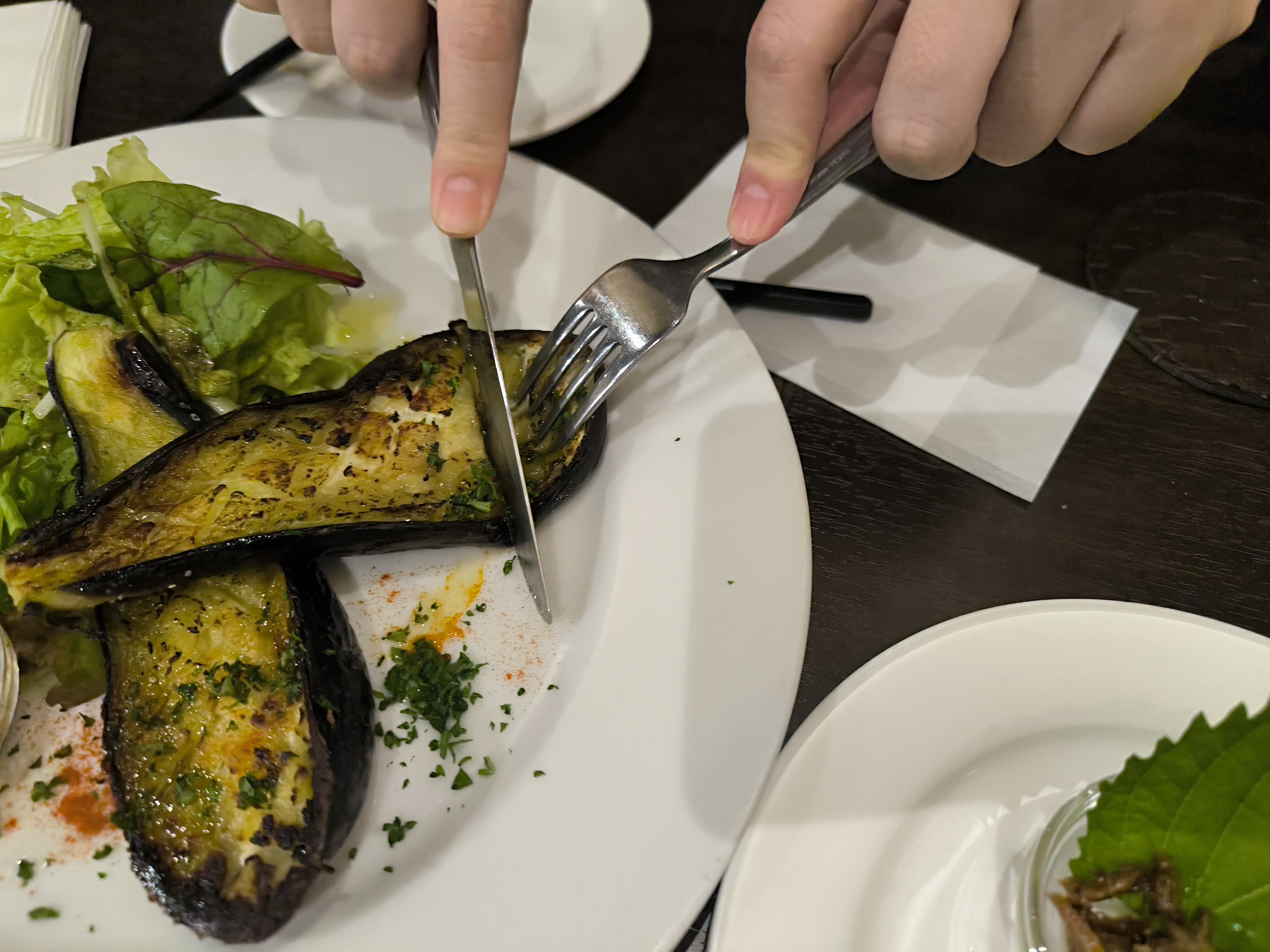 長野県の長ナスのステーキのオーブン焼き マッシュドサツマイモ