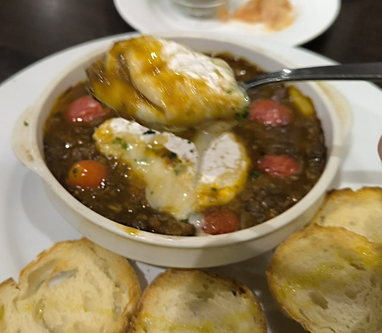丸ごとカマンベールチーズのカレーにドボンでオーブン焼き