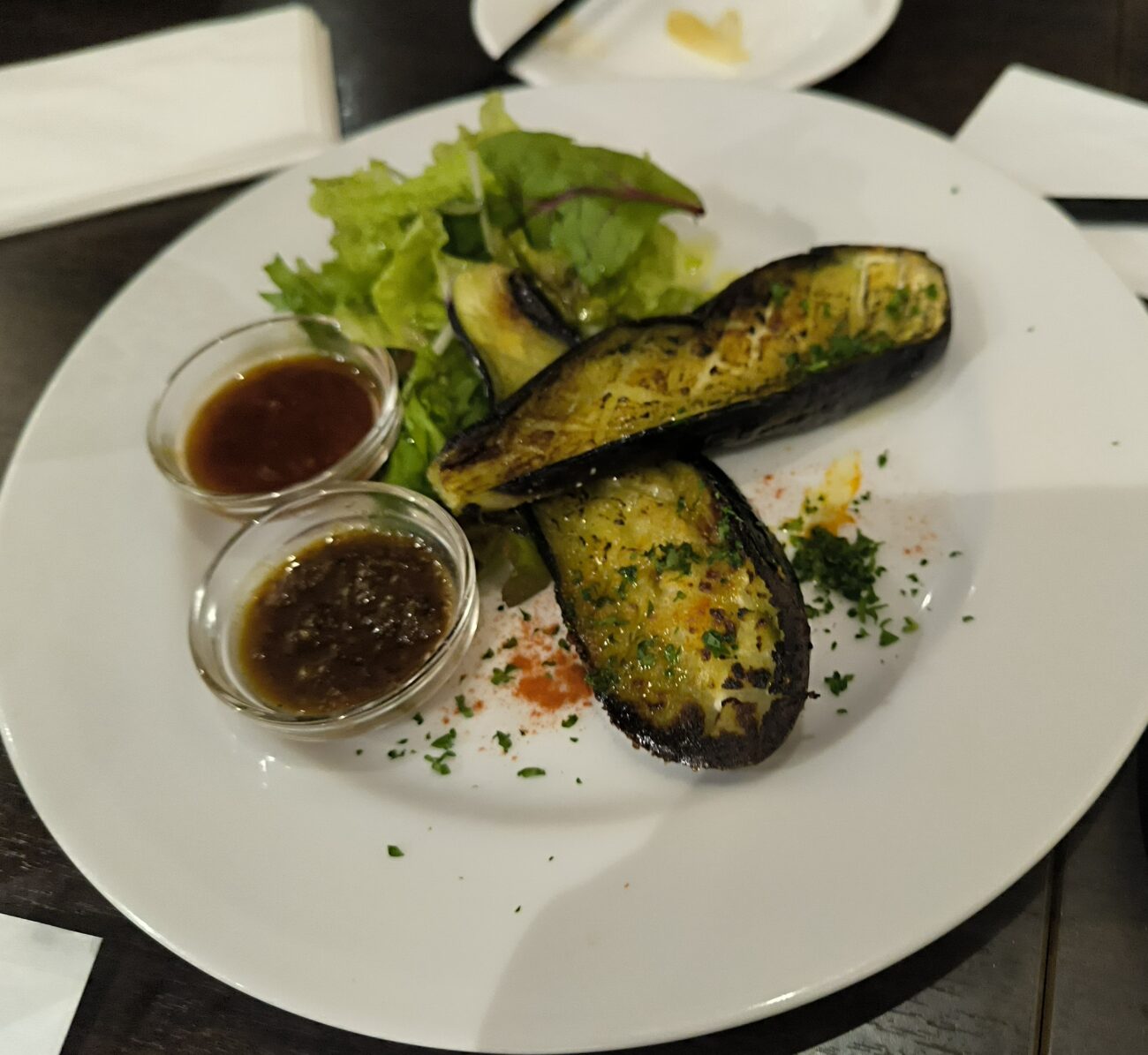 「長野県の長ナスのステーキのオーブン焼き マッシュドサツマイモ」 650円