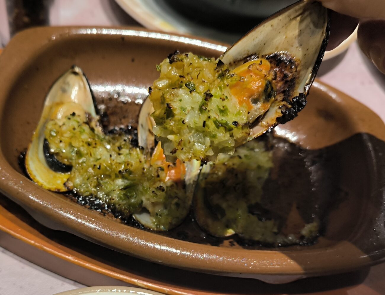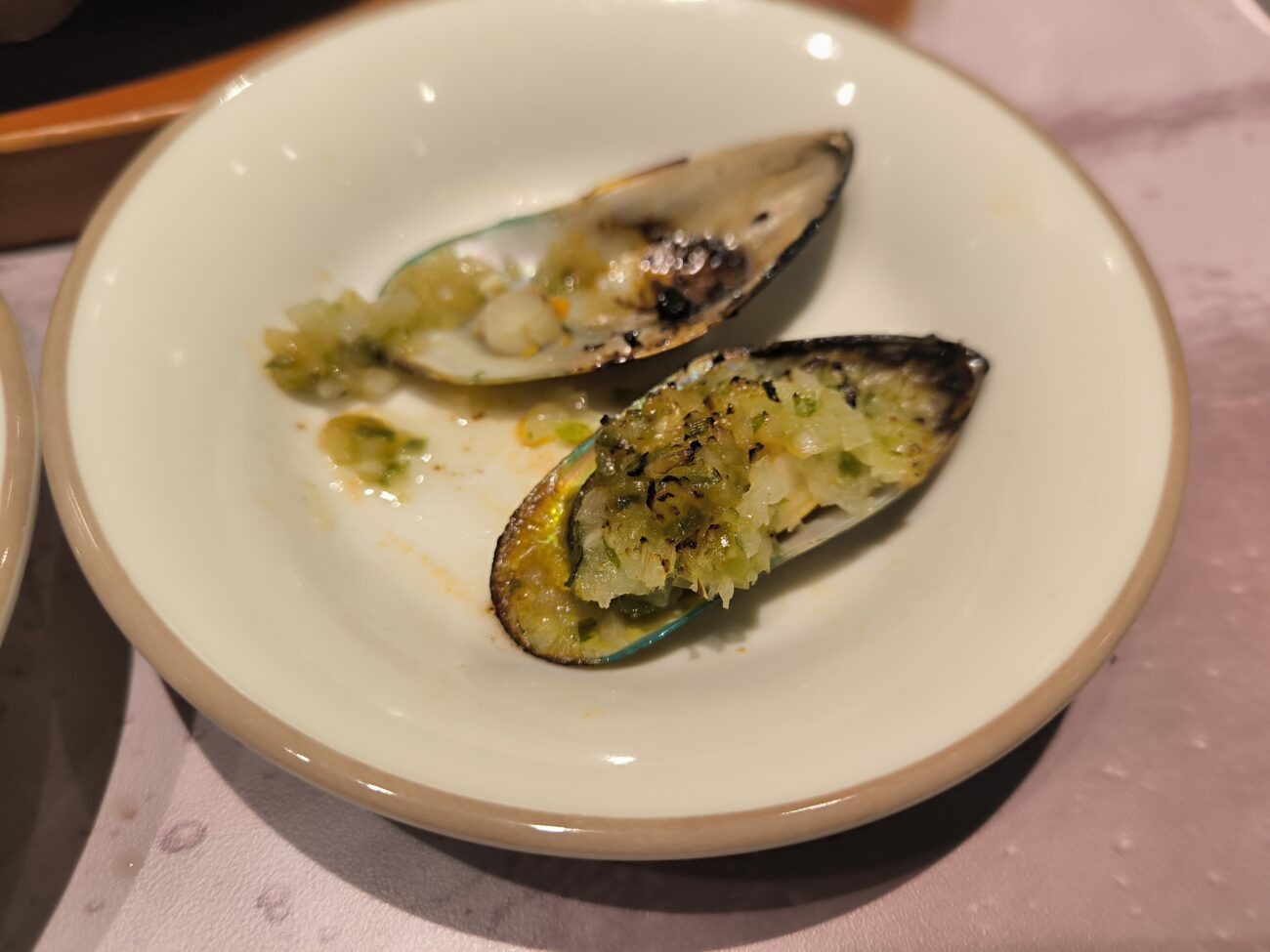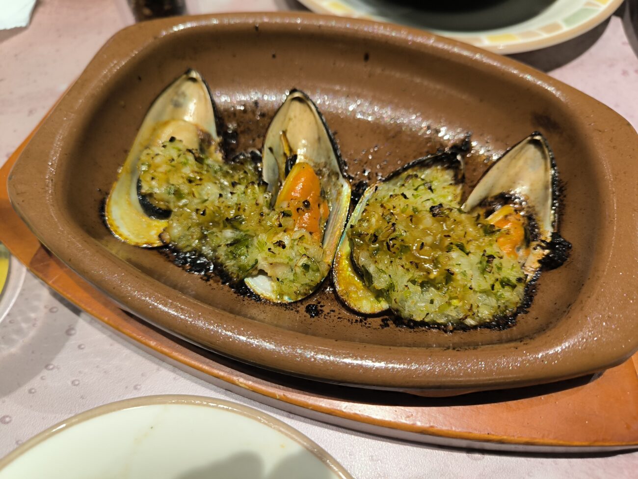 さらに新メニューの「ムール貝のガーリック焼き」(400円)も注文。