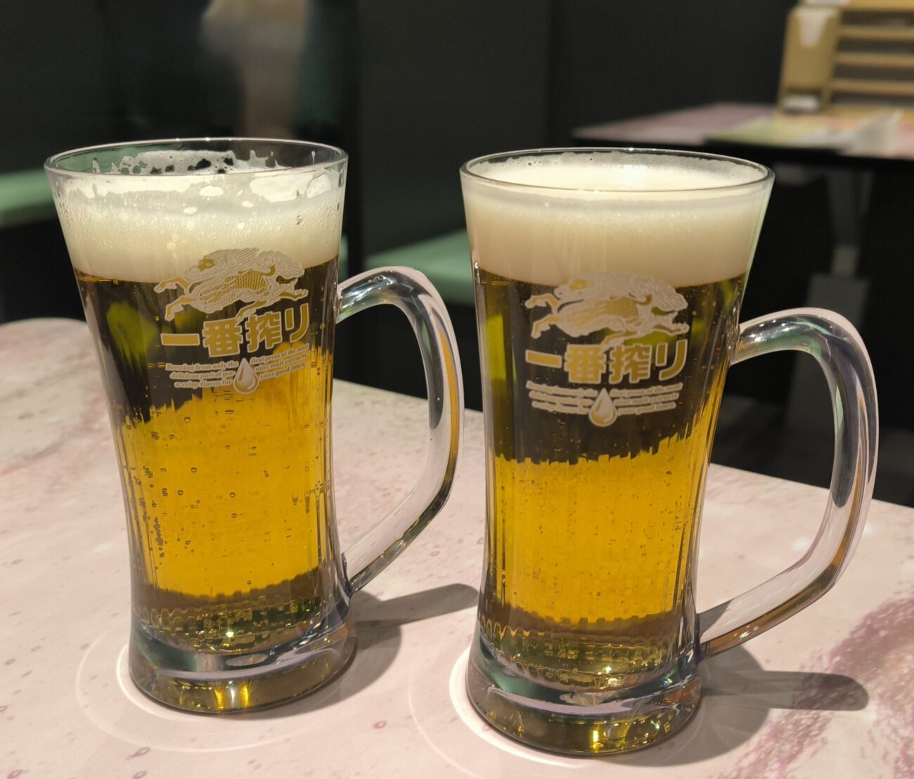 まずは一番搾りの生ビール。値段は400円で安いですねー。😀