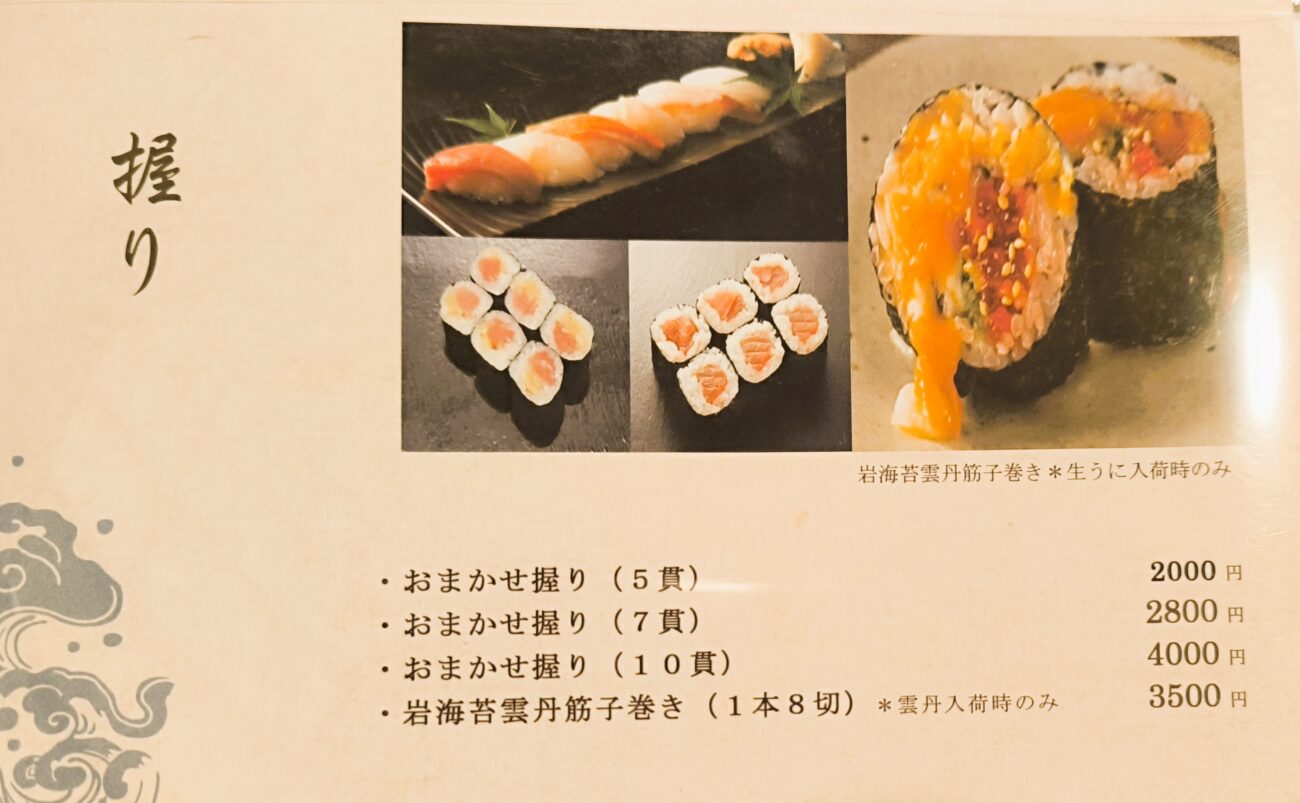 さらに、「おまかせ握り 5貫」お願いしました。2000円