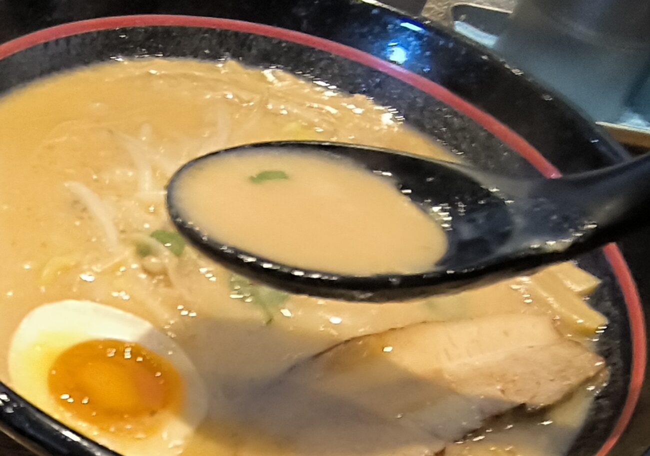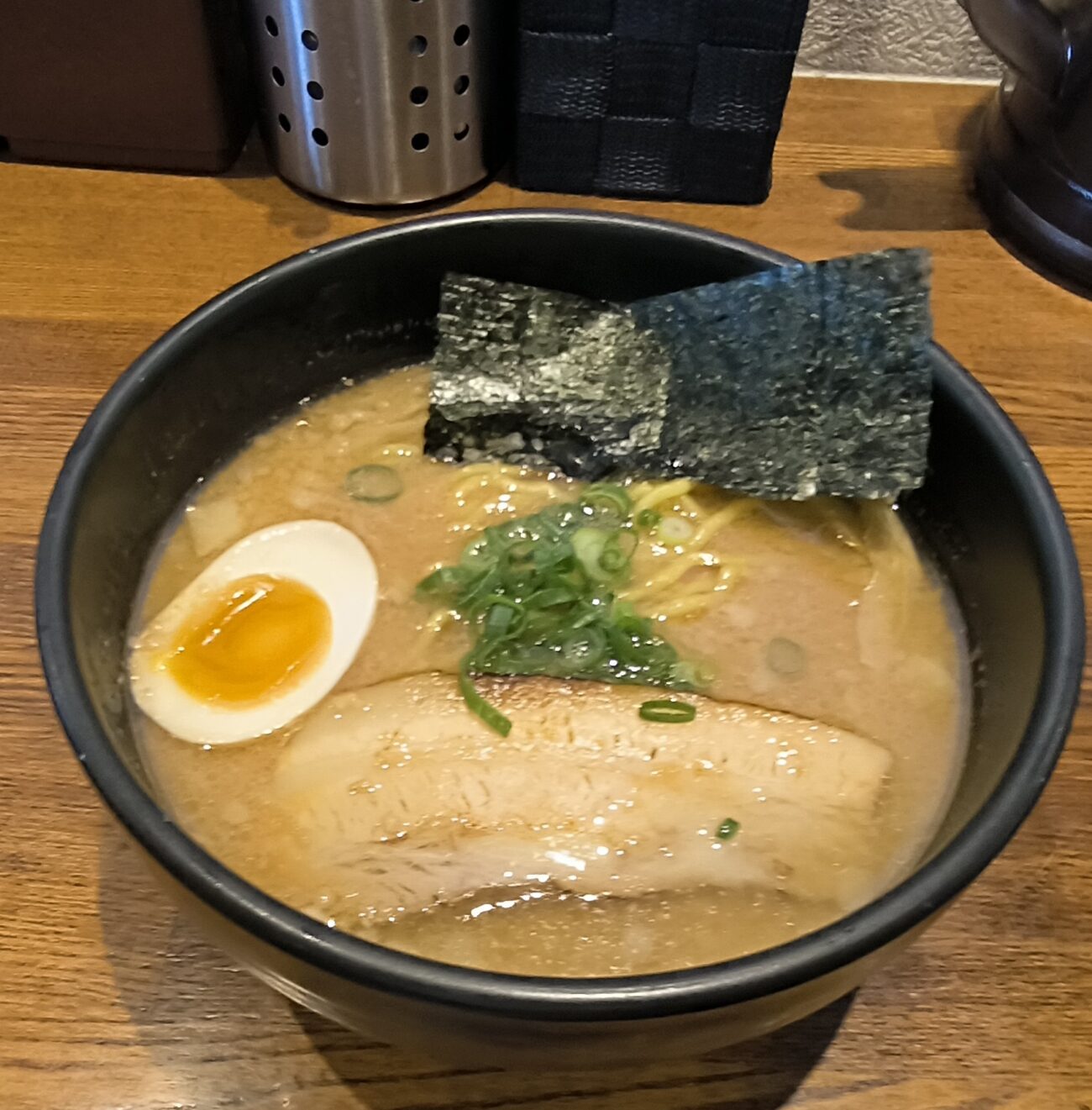 スープは豚骨ベースがしっかり出てて濃厚、醤油のキレもありながらまったり感も。