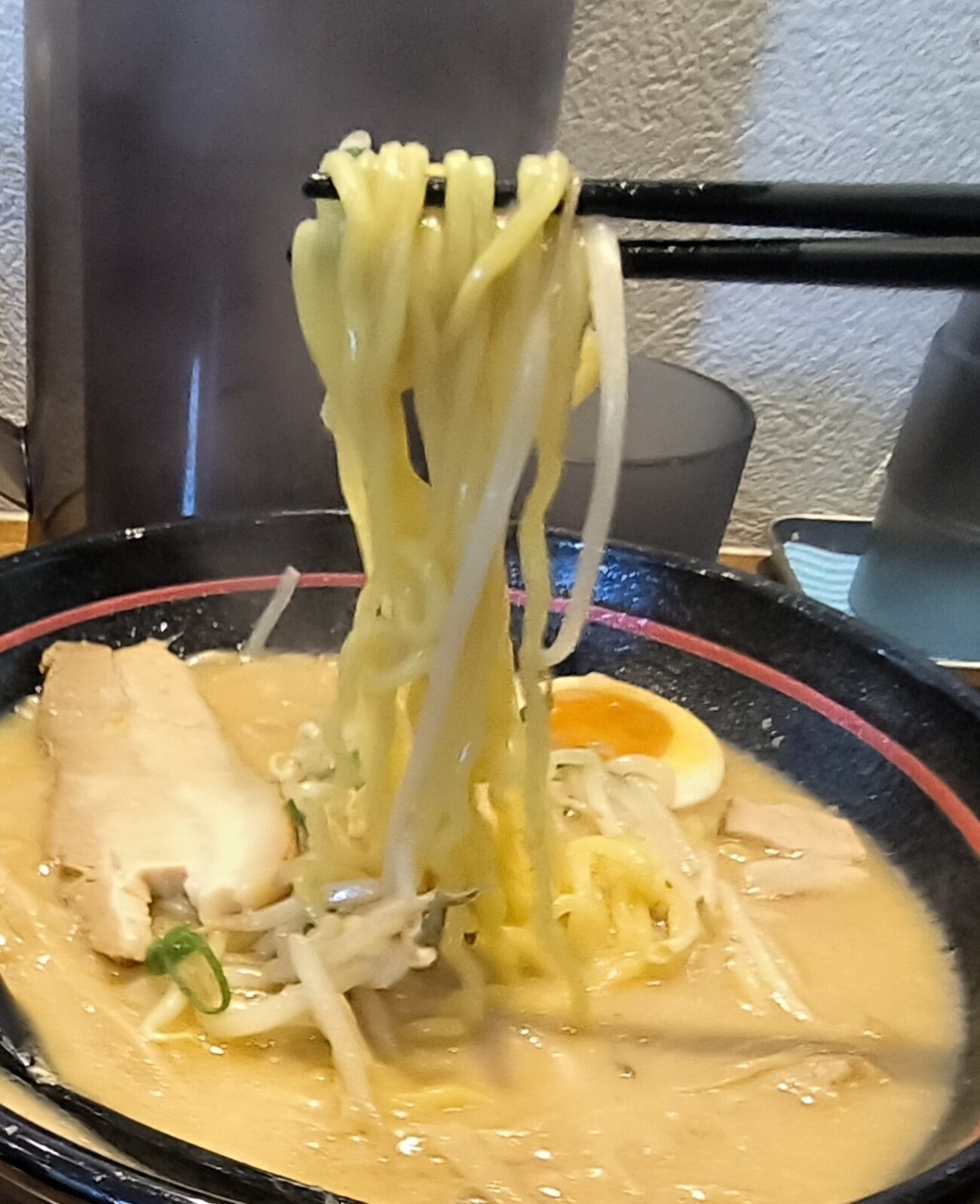 麺は中太くらいかな?やや弾力があって、スープとの相性抜群。