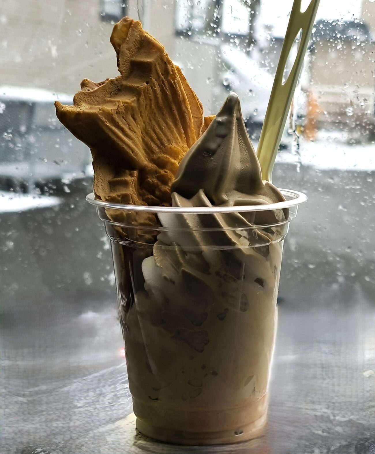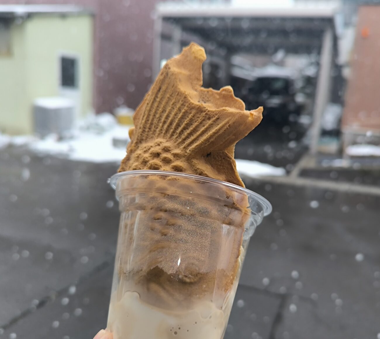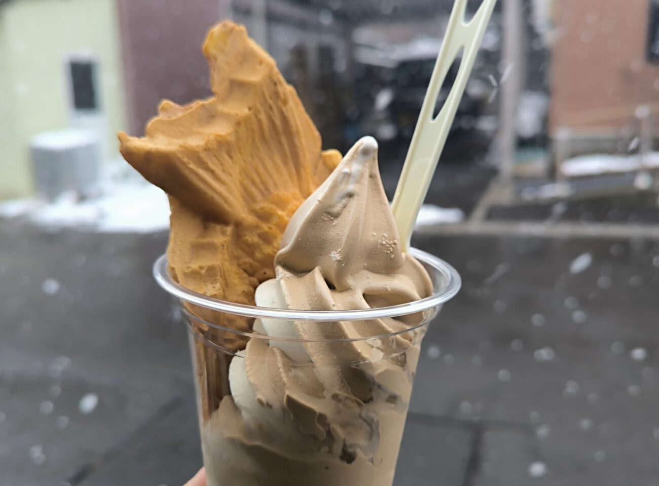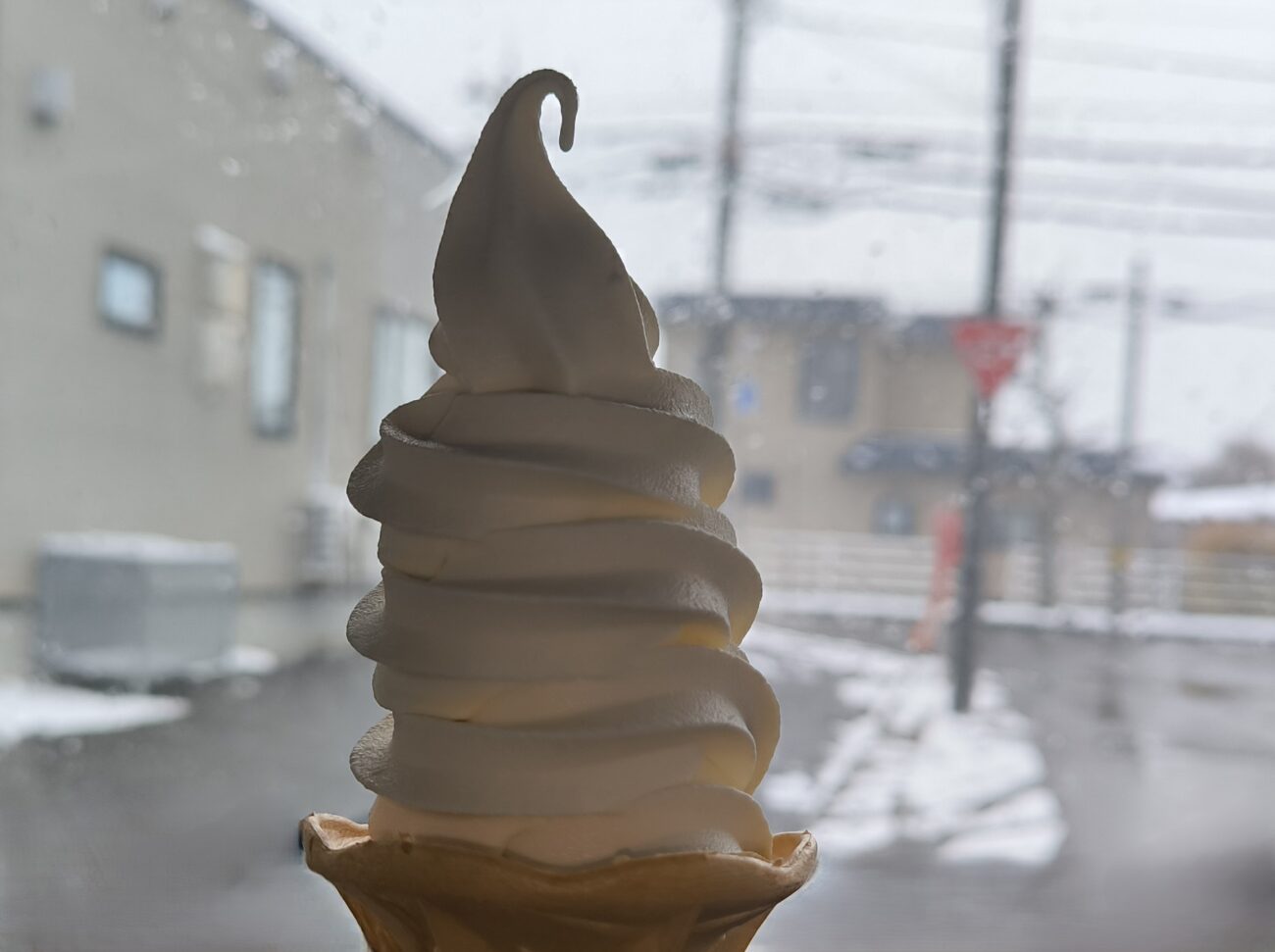 白い雪が舞う日のソフトクリームも、なかなかオツなものです。😀