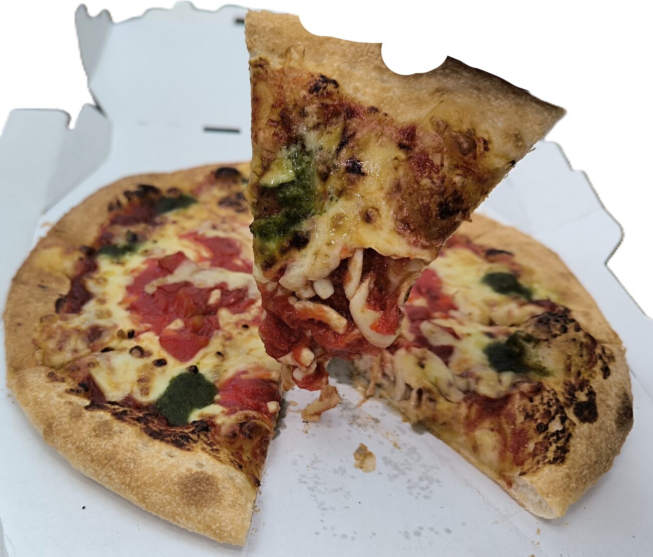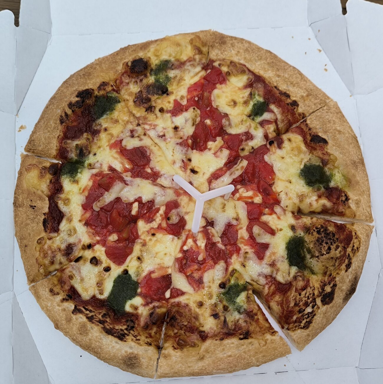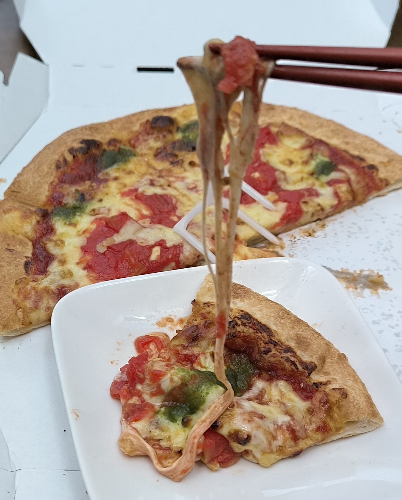 トマトの酸味とチーズのコクがちょうど良く、薄めの生地がパリッと焼き上がっていて、590円とは思えないレベルでした。