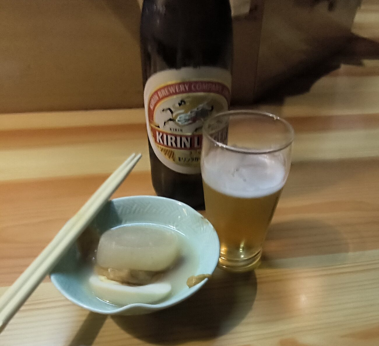ここはキリンラガーの瓶ビールです。瓶ビールはやっぱり裏切らないですね。