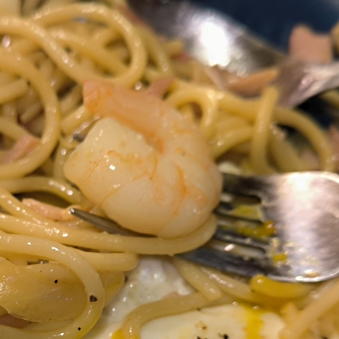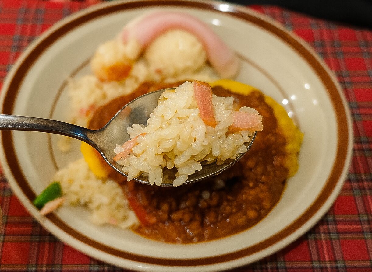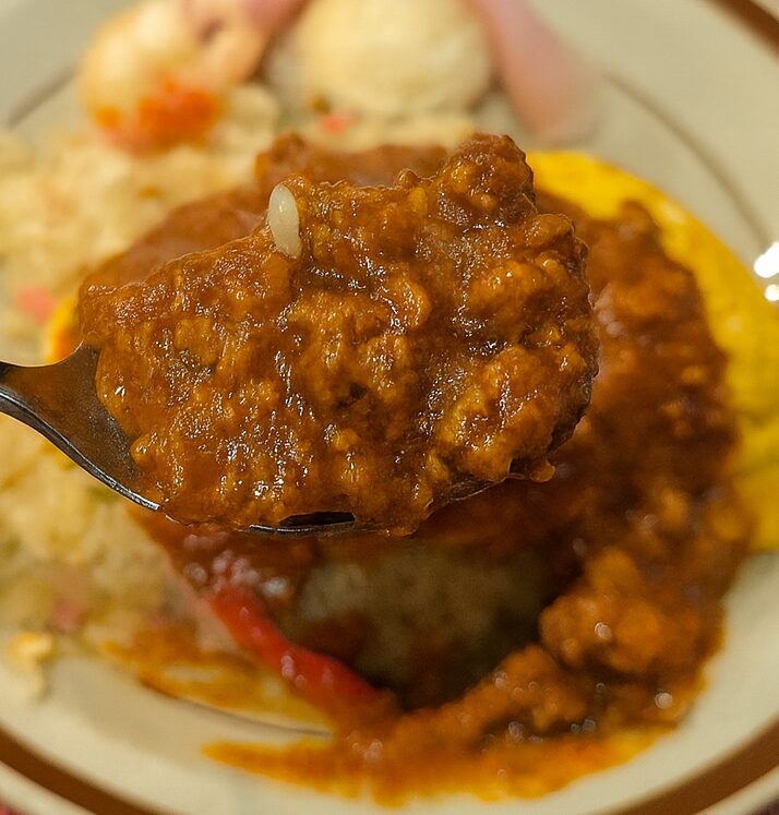 目玉焼きの黄身を絡めると、そこにまろやかさが加わってこれがまたいい。