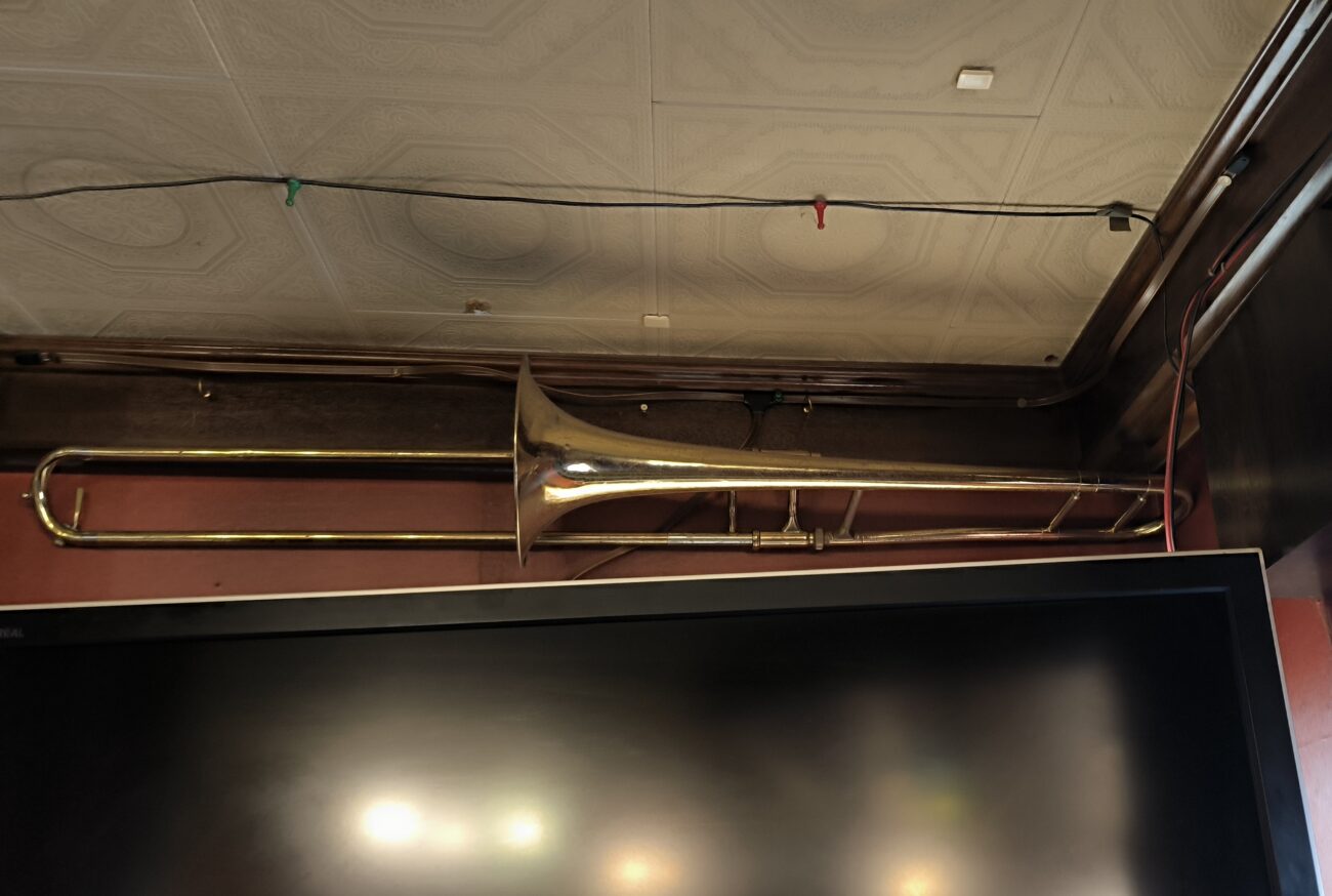 この日は昔ブラスバンドをやっていたという同行者がいて、お店に置いてあった楽器を見つけたことで、昔ブラバンをやっていたというマスターと意気投合。