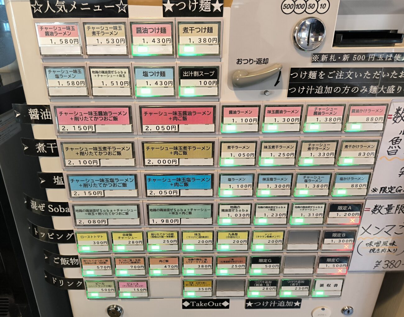 券売機を見ると、醤油味のつけ麺があったので今回はそれを購入。
