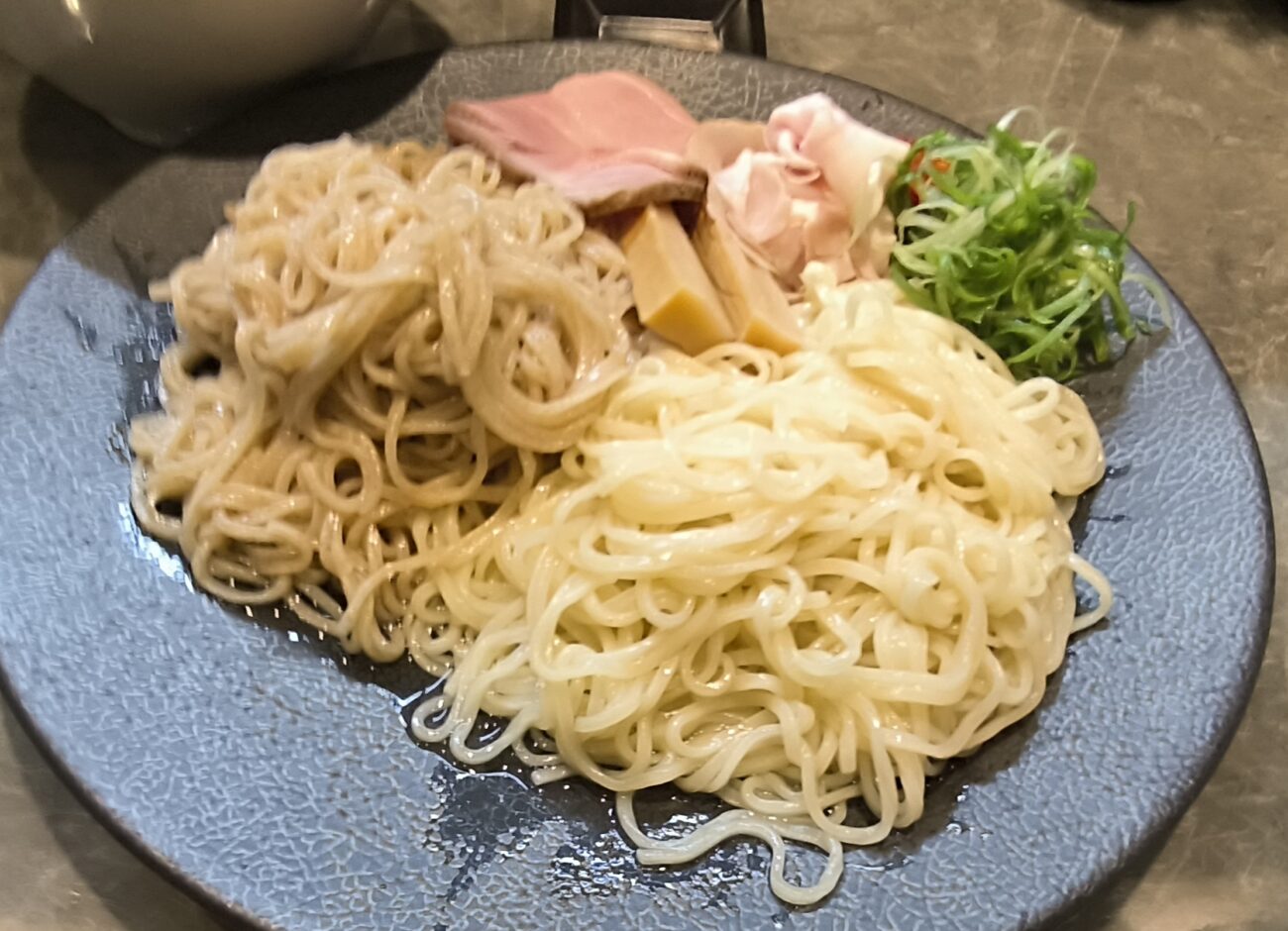 皿の上には2種類の麺が美しく盛られ、まるで手打ち蕎麦のような雰囲気。