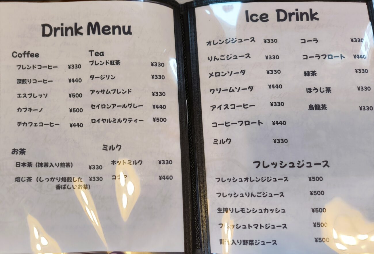 さて、お店の玄関前でもメニューを見て驚いたのですが、喫茶ポニーは食事もドリンクもとってもリーズナブルなんです!