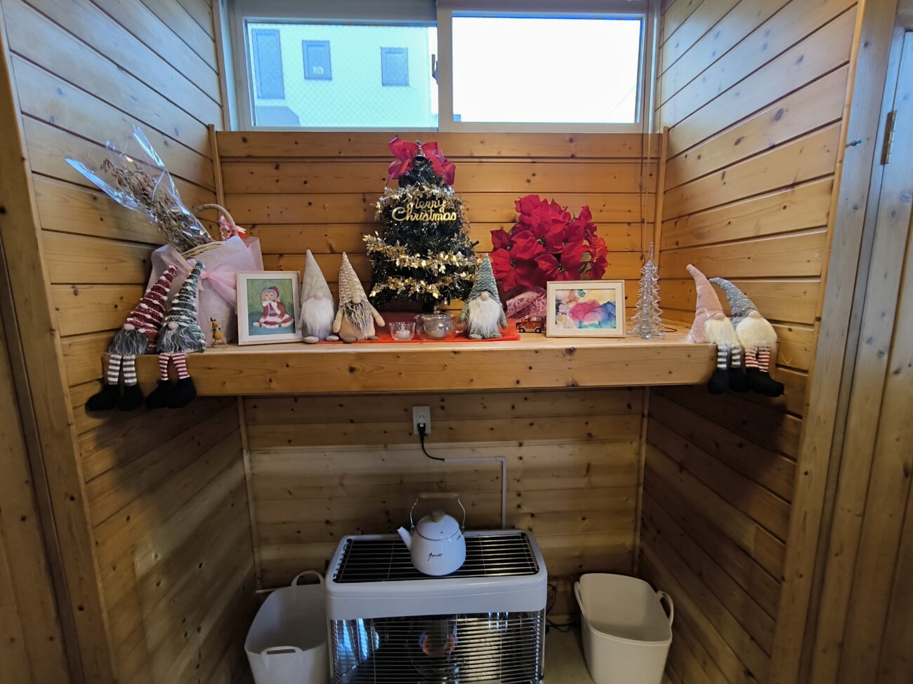 この椅子の赤いクッションがまた可愛い!新しさの中に懐かしさが漂っていて、居心地の良い空間です。