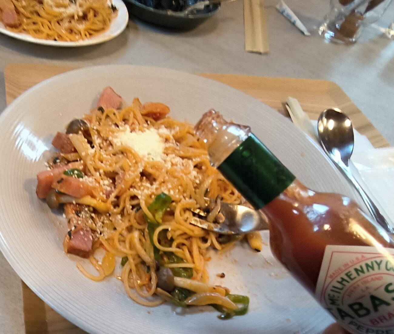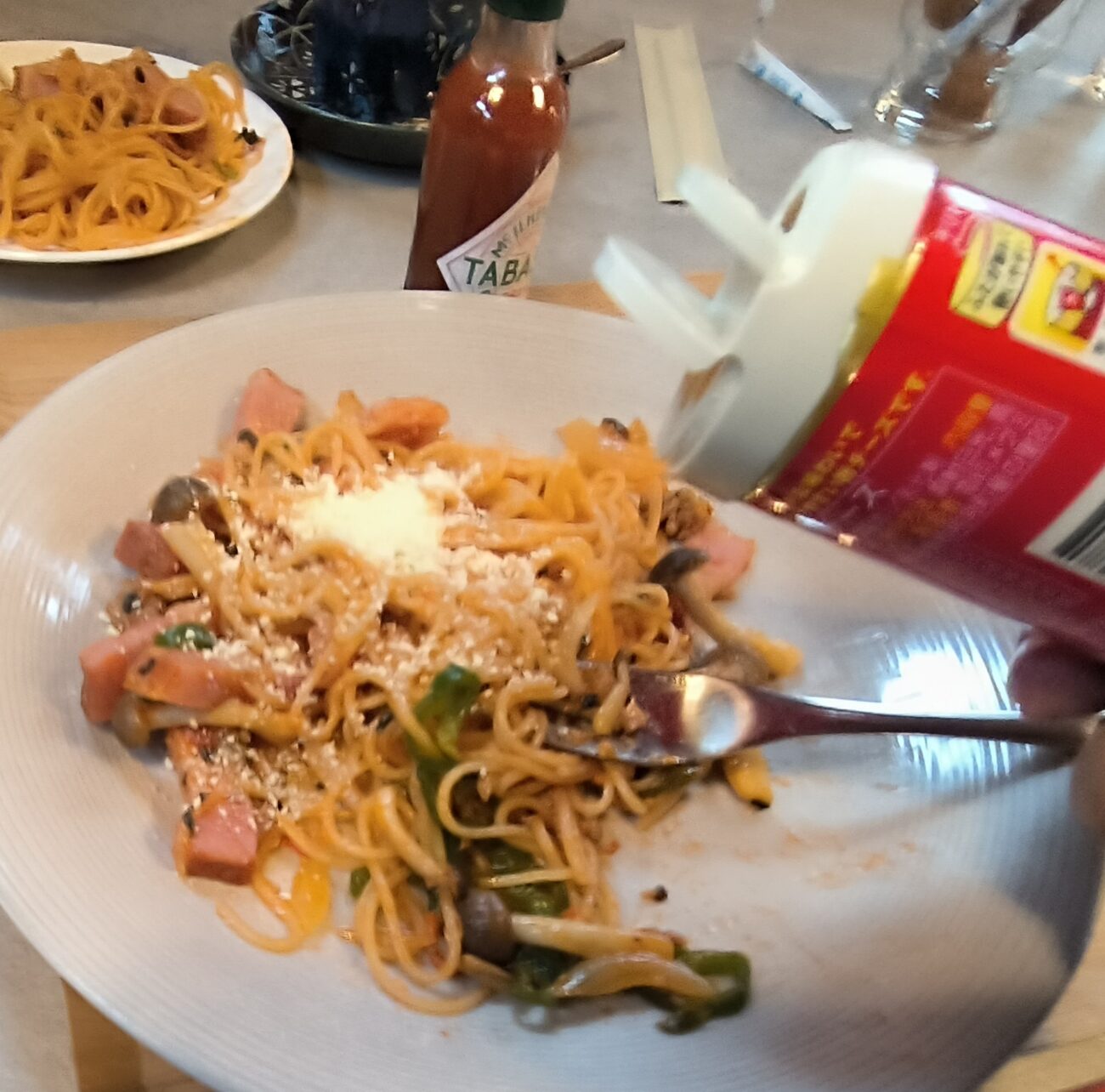もちろん、途中からは恒例の粉チーズとタバスコをかけて味変を楽しみました。