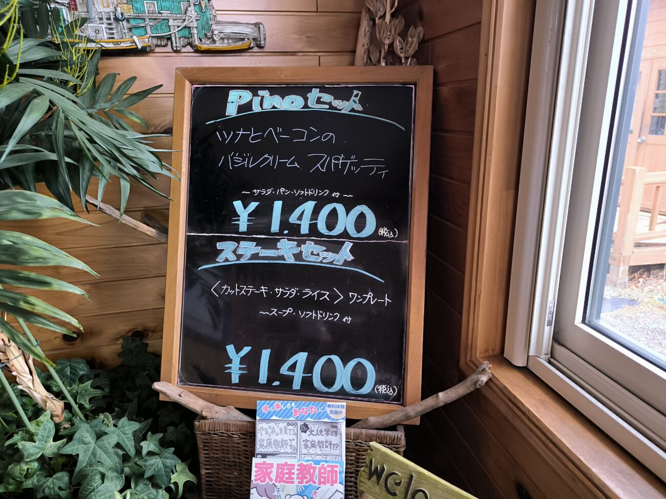 玄関には今日のランチメニューの看板が出ています。