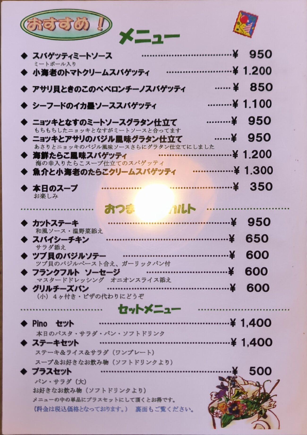 ●玄関には、このメニュー!