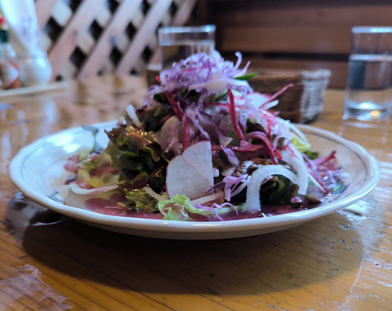 まず出てきたサラダは、彩りが鮮やかで野菜の量もかなりのもの。