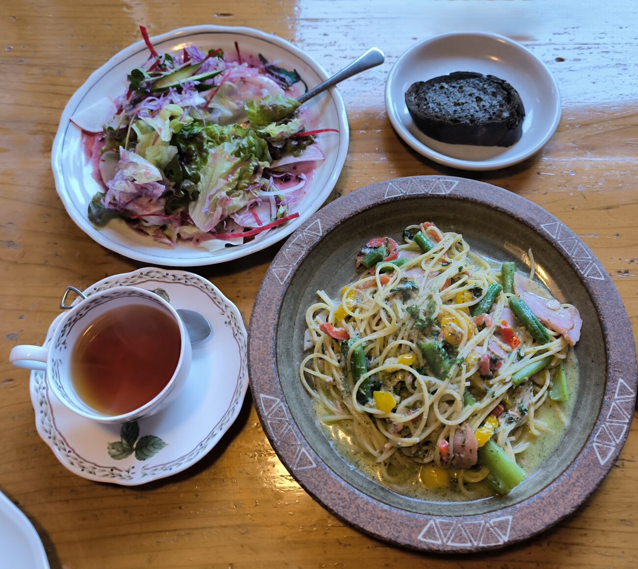 この日は日替わりパスタの「ツナとベーコンのバジルクリームソース」でした。