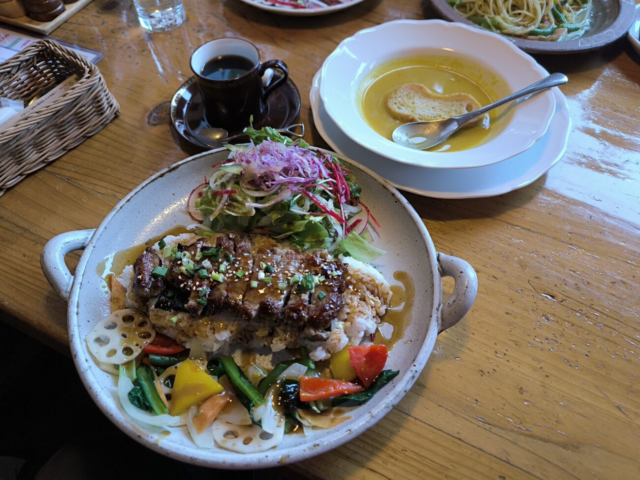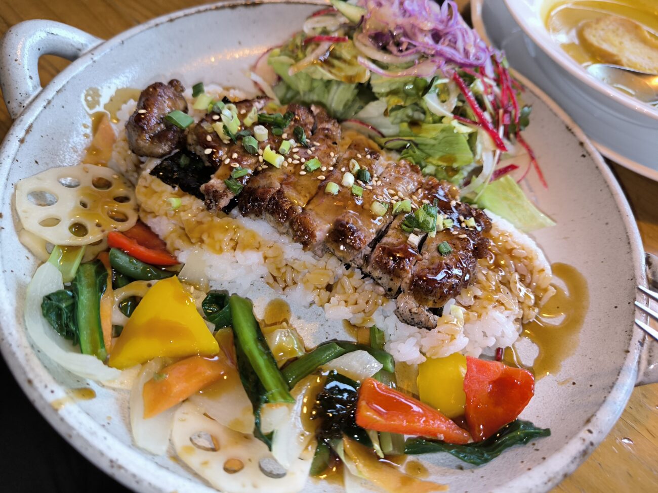 野菜もたっぷり盛られていて、彩り豊かな見た目だけでなく食べごたえも十分です。