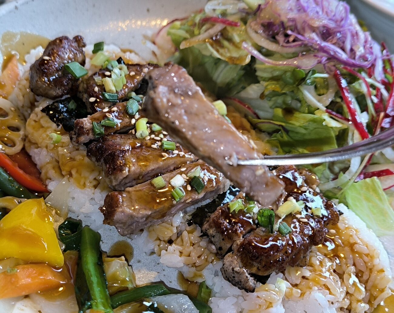 ややミディアム寄りの焼き加減で、噛むほどに旨味がじんわり。