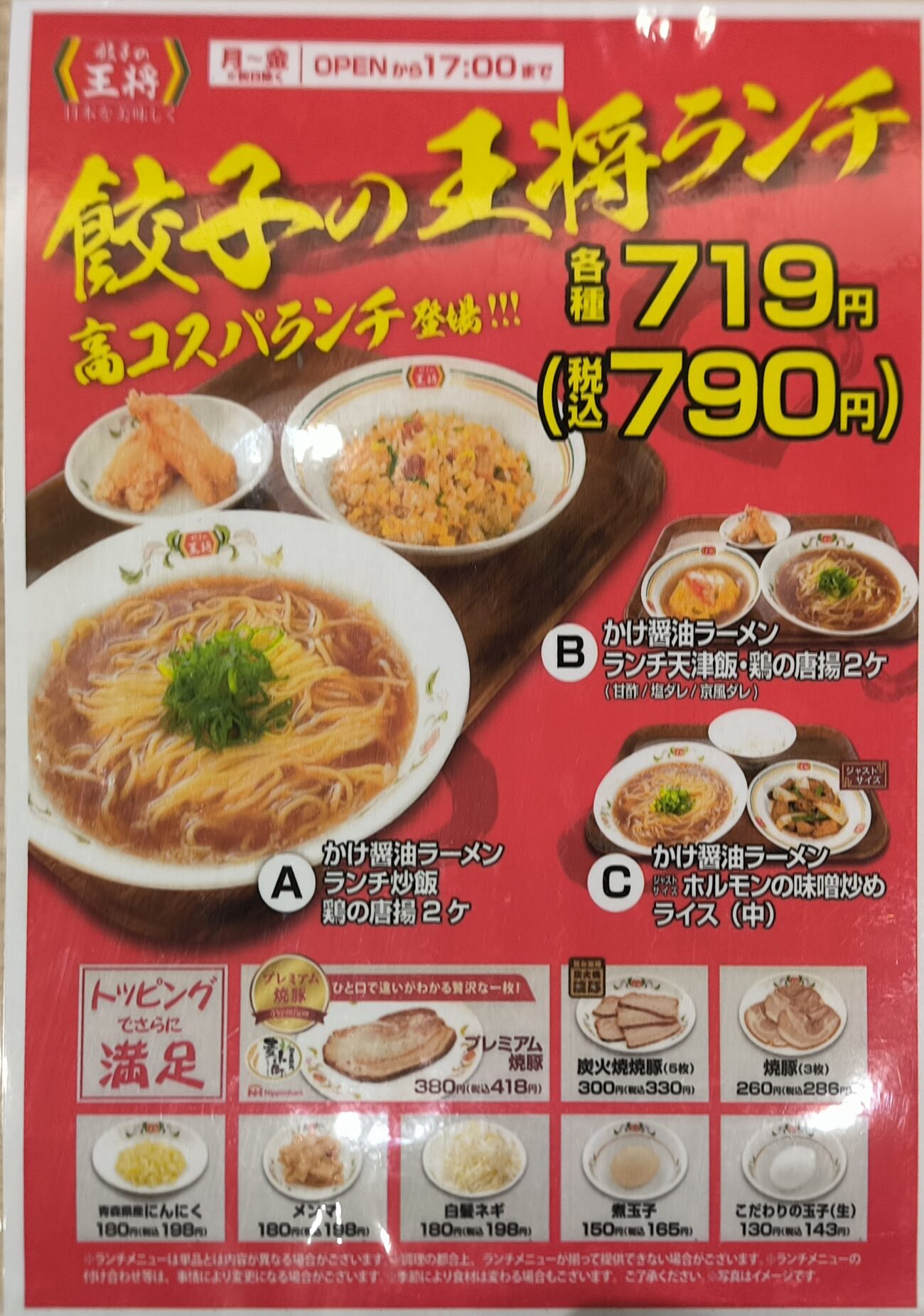 「あの王将が、ランチメニューを出してきたらしい…?」って聞いたら、行くしかないしょって。(笑)