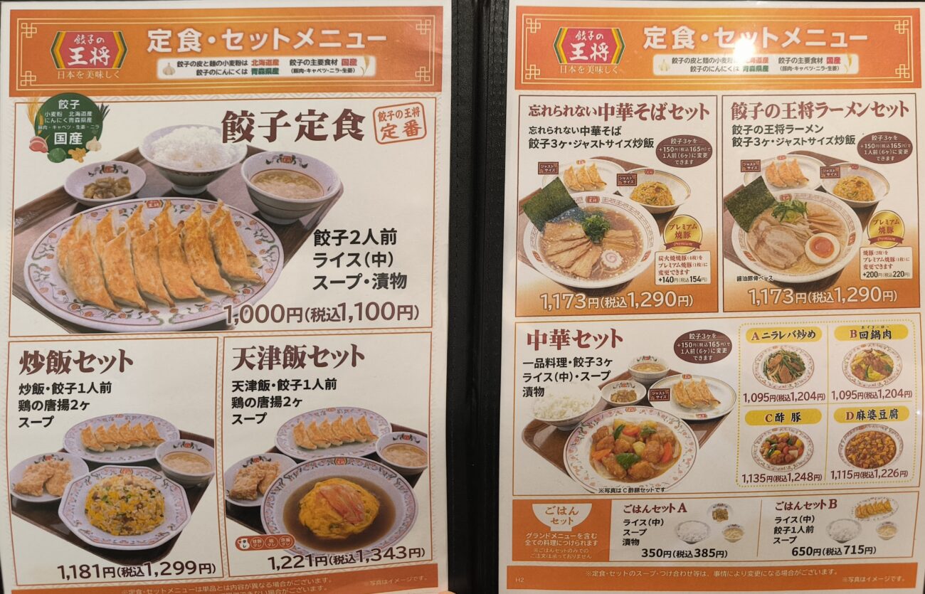 通常の定食・セットメニューと比べると、この値段の「餃子の王将ランチ」はやはり安いですね。