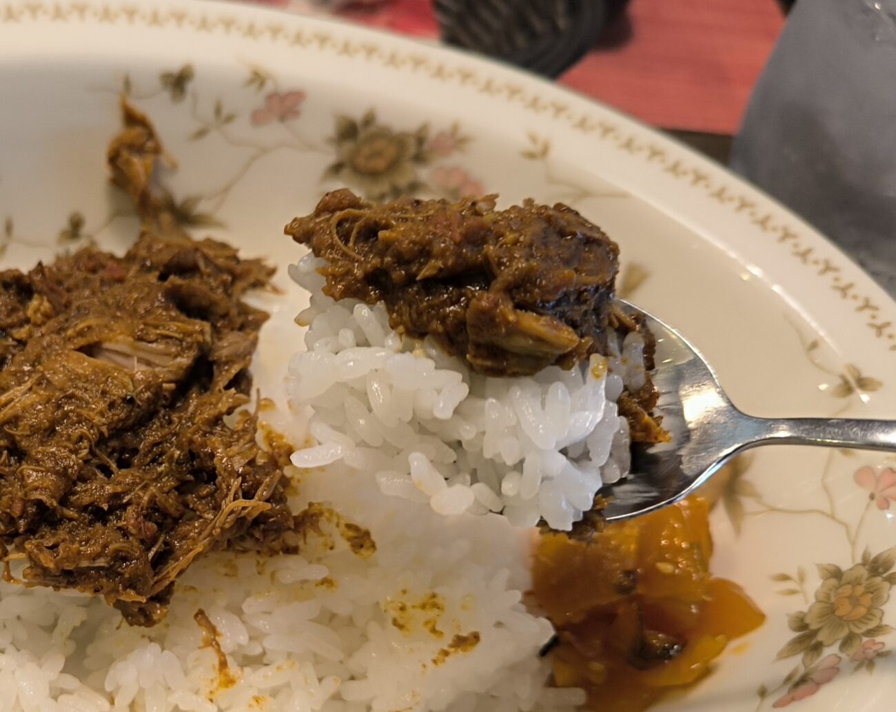 ルーとよく絡み、辛いもの好きにはたまらない仕上がりです。