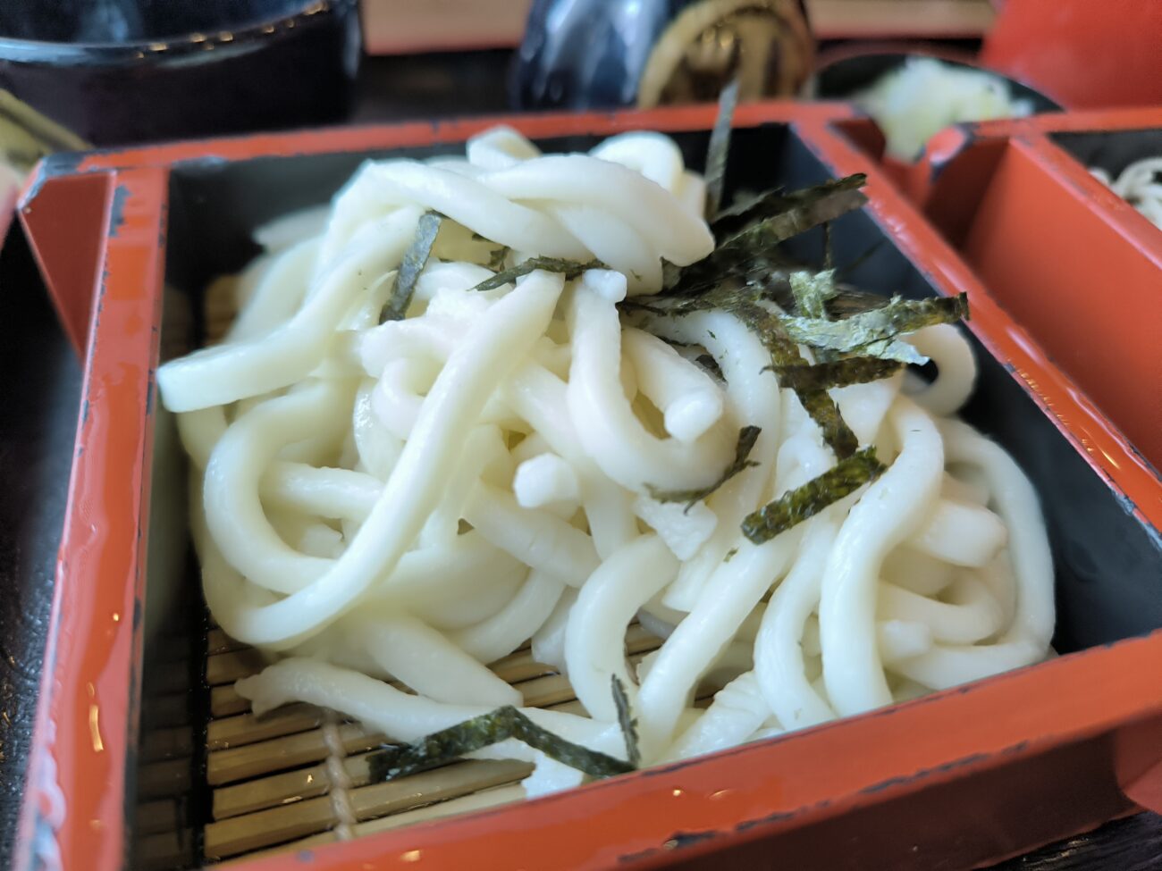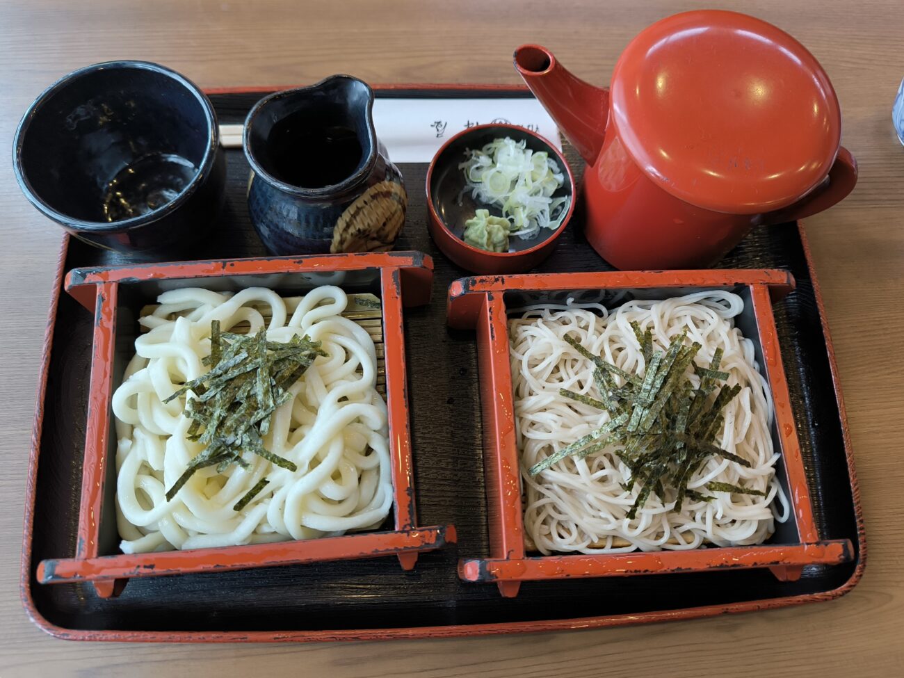 出てきたのは、冷たいうどんと冷たいそばのダブル攻撃セット。