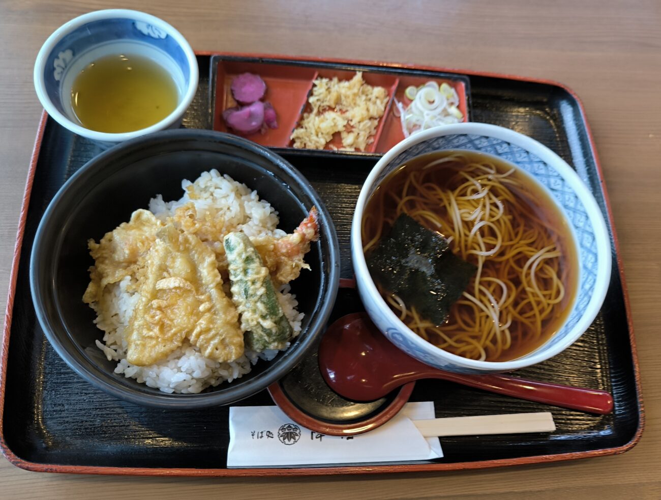 自分が頼んだのは、定番の「 天丼とおそばのセット」