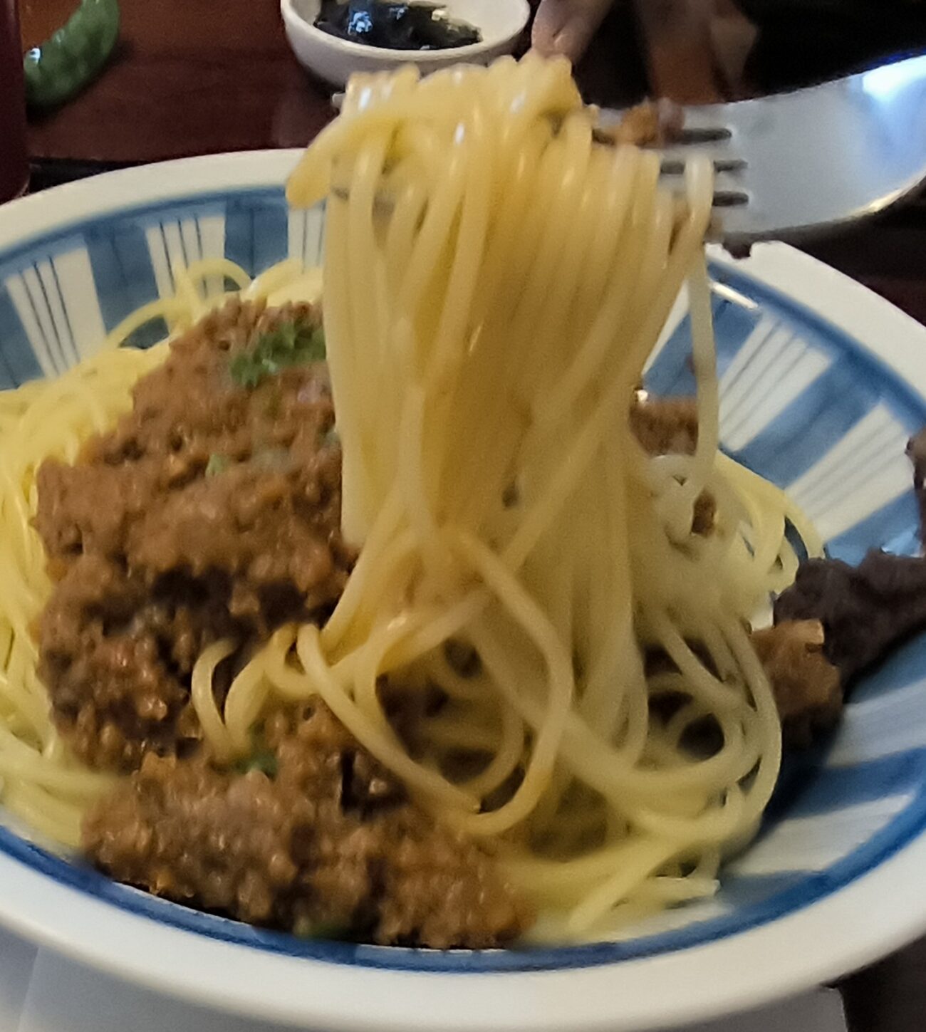 ミートソースは肉の粒感がしっかり残っていて、このタイプのパスタによく合います。