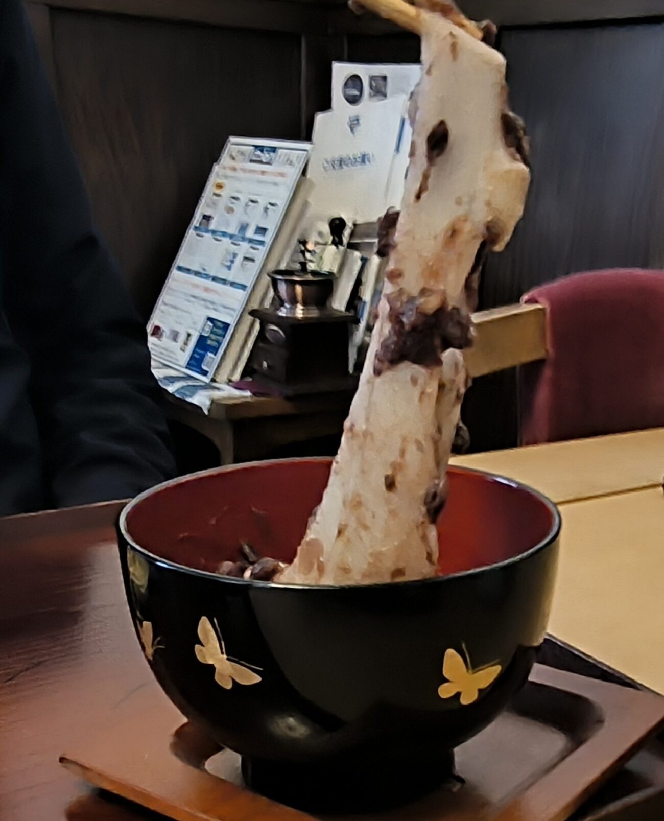 おしるこは、甘さが前に出すぎないタイプ。ギドギド感はなく、後味もすっきりしています。